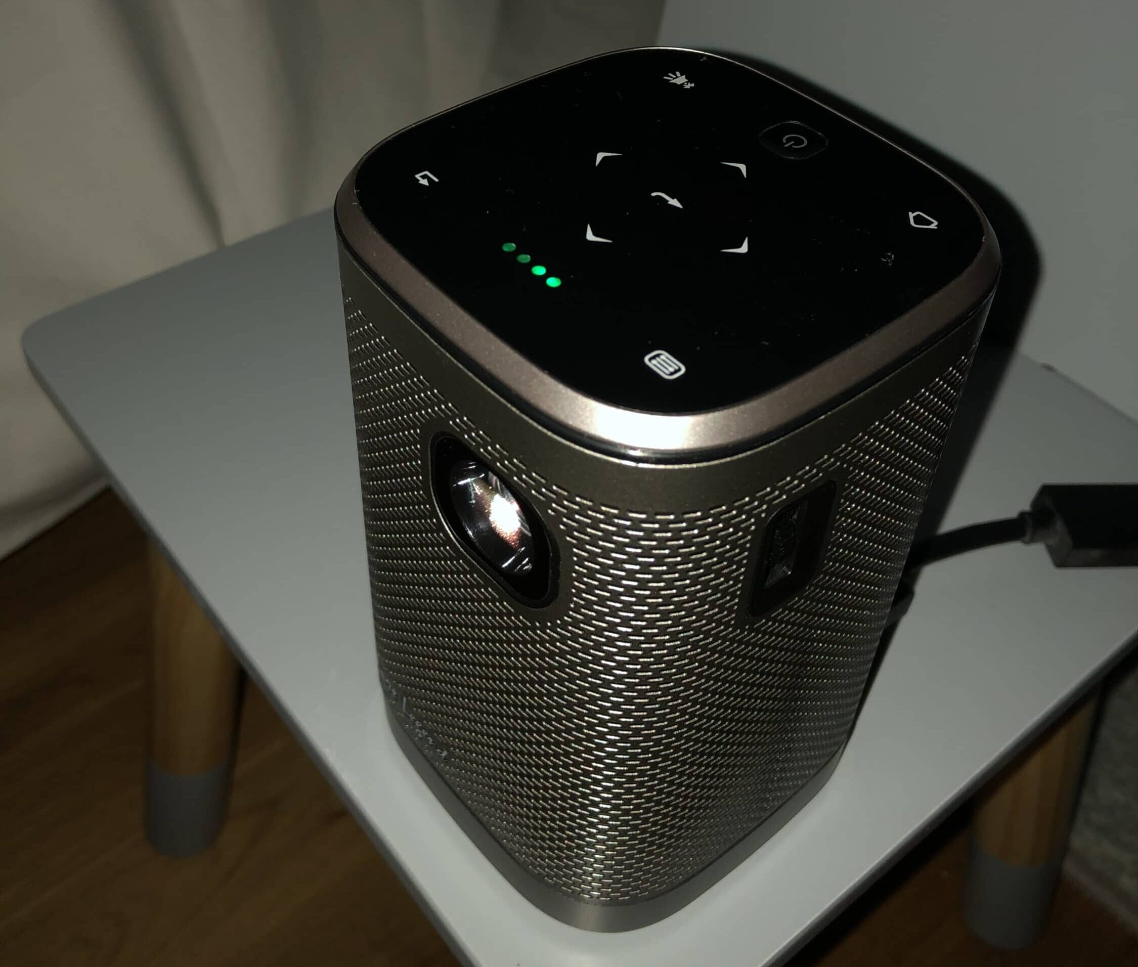 Gut gefallen hat mir übrigens auch der Klang des kleinen Beamers. Hier wird deutlich, dass die optische Ähnlichkeit zu einem Sonos One nicht von ungefähr kommt. Zwar kann der Mini-Projektor in Sachen Sound nicht mit den US-Amerikanischen Experten für smarte Lautsprecher mithalten, doch was aus der kleinen Box kommt ist wirklich gut.