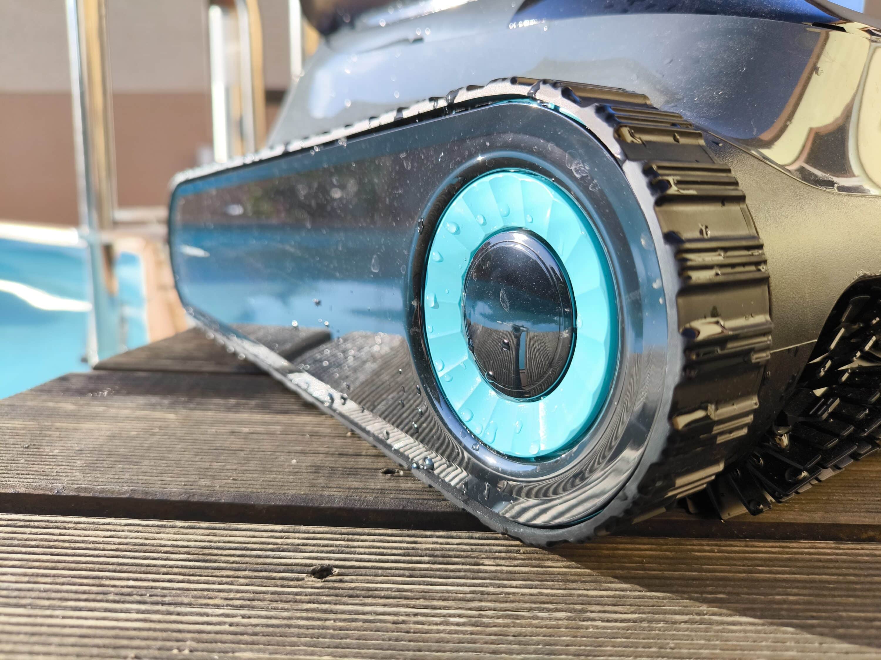 Unter der Haube des AIPER Scuba S1 verbirgt sich viel Technik, die eine effiziente Poolreinigung ermöglichen soll. Neben einem 3,5 Liter großen Schmutzbehälter und einer langen Laufzeit von bis zu 150 Minuten filtert der Poolroboter satte 265 Liter Wasser pro Minute. Dank langer seitlicher Raupenketten ist der Scuba S1 nicht nur am Boden gebunden, sondern kann auch die Beckenwand bis zur Wasserlinie hochfahren. Dies betrifft sowohl Wände mit einer Neigung bis zu 15 Grad als auch Wände mit einer vollen Schräge von 90 Grad.
