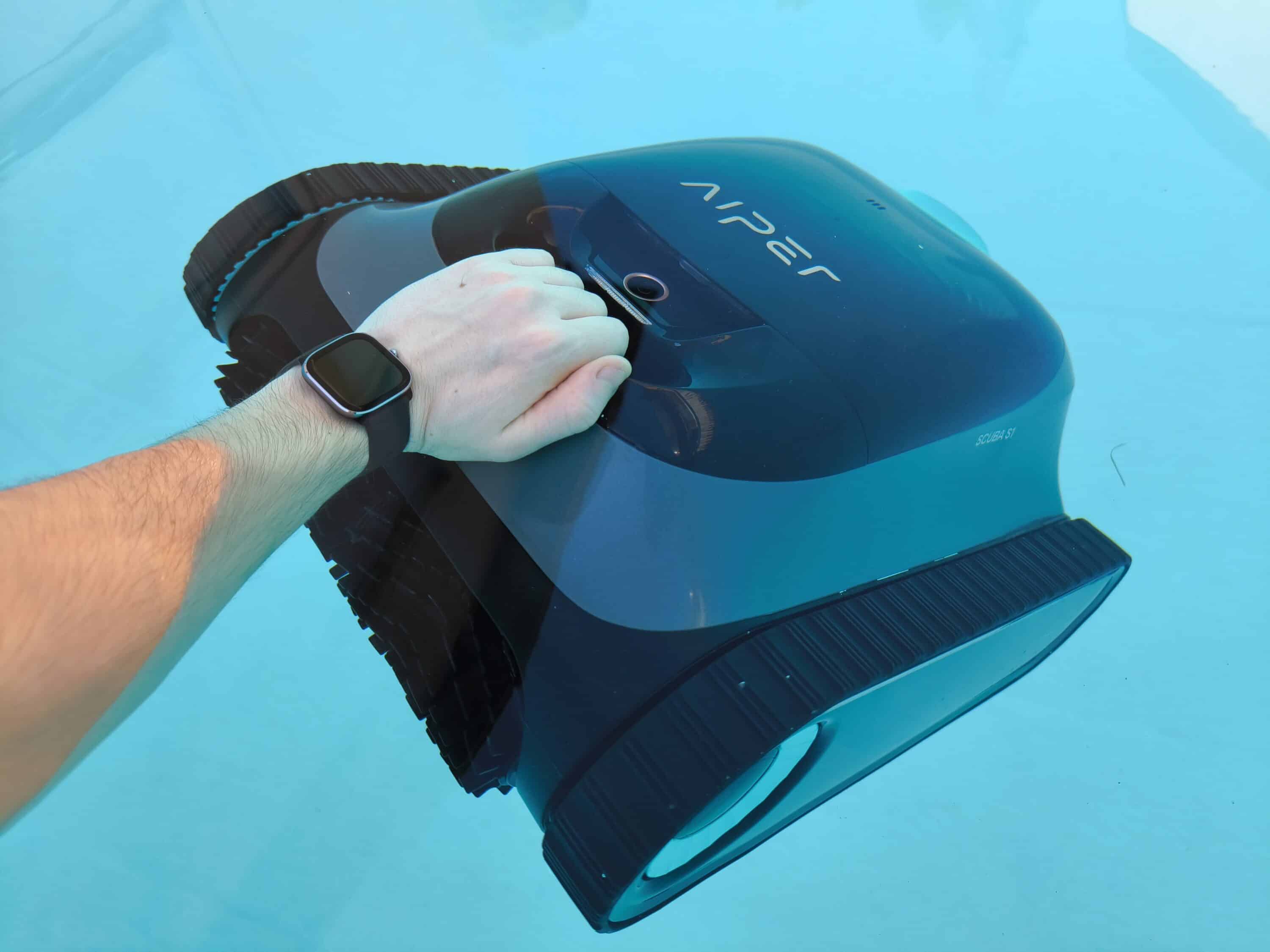 Das Reinigungsverfahren des AIPER Scuba S1 ist identisch mit dem anderer Poolroboter. Um eine Geruchsbildung zu vermeiden und um zu verhindern, dass sich hartnäckige Schmutzpartikel im Filterkorb festsetzen, wird empfohlen, den Scuba S1 nach jedem Durchgang vollständig auszuspülen.
