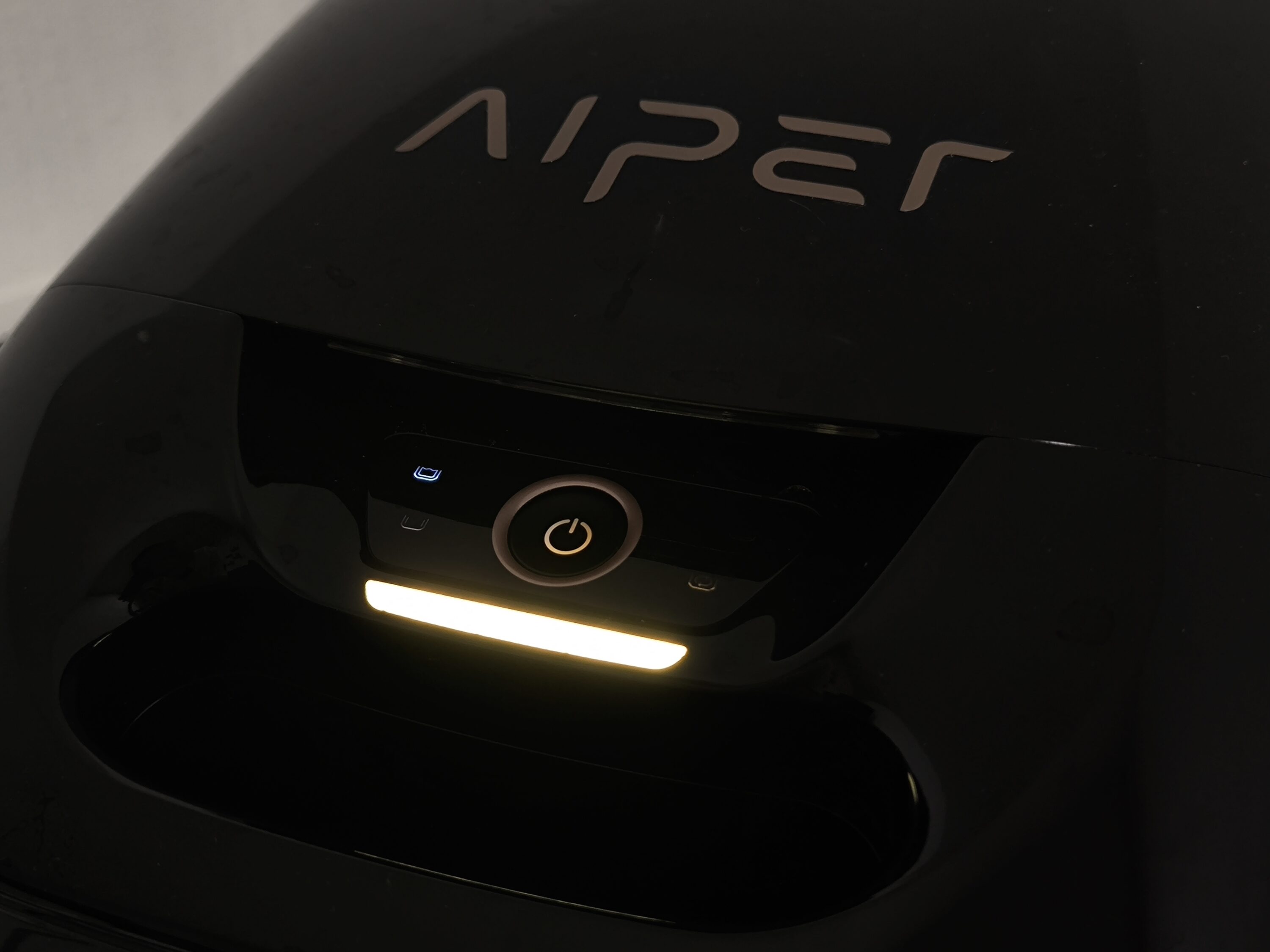 Hinsichtlich der Verarbeitung macht der AIPER Scuba S1 einen sehr guten Eindruck. Alle Bauteile sind solide und fest montiert, so dass es an dieser Stelle keinerlei Knackgeräusche gibt. Auch die Bedienung des Scuba S1 ist einfach und erfolgt über einen einzigen Taster auf der Oberseite des Roboters. Unterhalb davon ist zudem eine helle LED-Leiste angebracht, welche den aktuellen Akkustand optisch in drei Abstufungen wiedergibt. Weitere Pluspunkte sammelt der Poolsauger auch beim Öffnungs- und Schließmechanismus, der mittels eines Clip-Buttons bedienerfreundlich von der Hand geht. Abzüge, die nicht einmal den Roboter selbst betreffen, gibt es indes beim Netzteil, das beim Aufladen des Scuba S1 hochfrequente Töne abgibt.