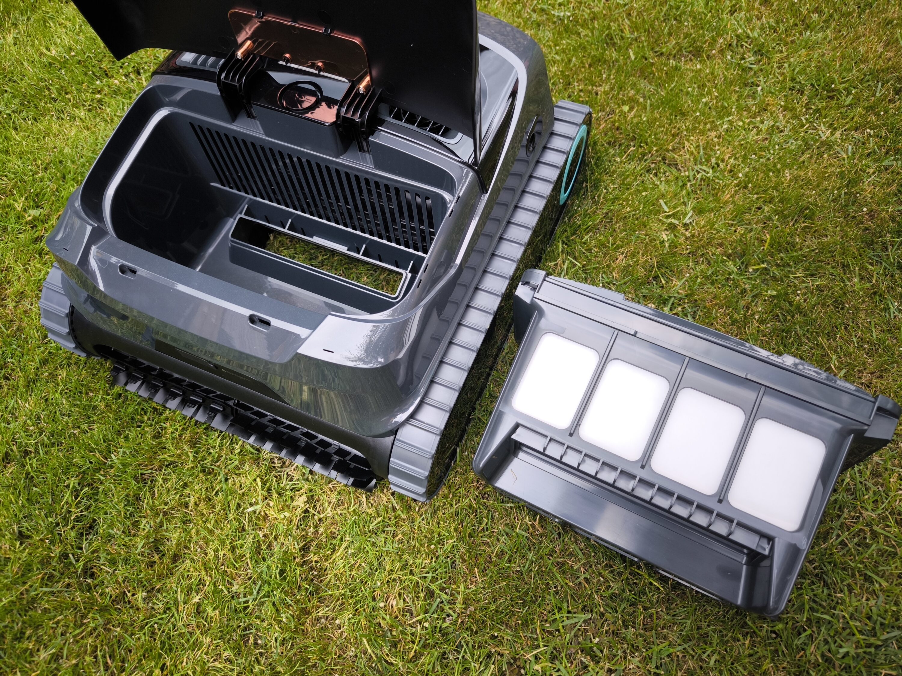 Das Einsetzen des mehrteiligen Filterkorbs erfolgt in entgegengesetzter Reihenfolge. Unterm Strich lässt sich sagen, dass der AIPER Scuba X1 einen soliden Reinigungsprozess integriert hat, der vom Aufwand her moderat ausfällt. Einzig die bereits erwähnte Verriegelung zum Öffnen des Gehäusedeckels macht einen recht schwerfälligen Eindruck.