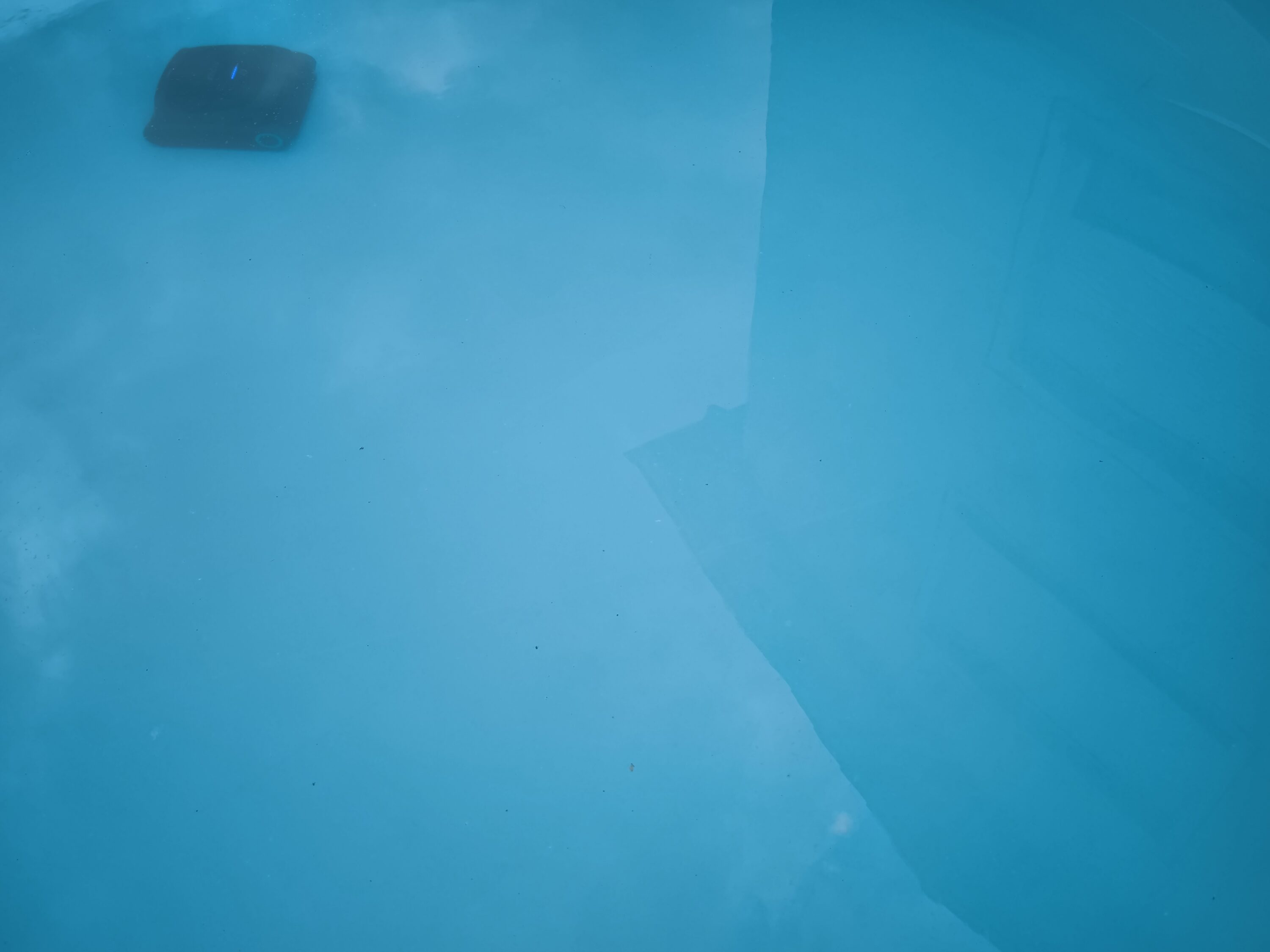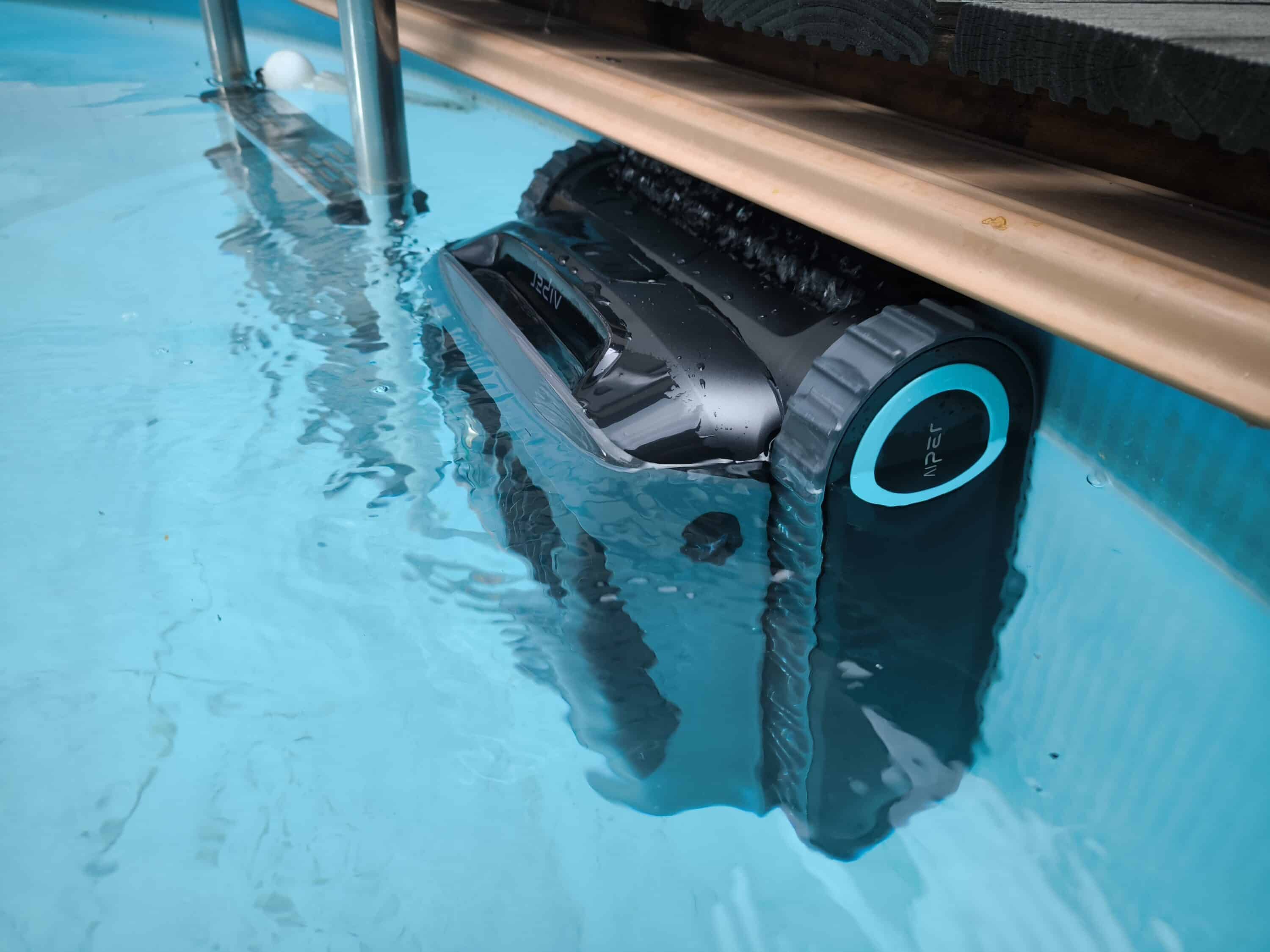Das Reinigungsergebnis an der Wand bzw. an der Wasserlinie ist ebenso beeindruckend wie das am Boden. Wir konnten im Nachgang keine Stellen feststellen, an denen Schmutz zurückgeblieben ist. Verblüffend war allerdings, dass der Roboter, obwohl AIPER mit vielen Sensoren wirbt, kurzerhand die Poolleiter küssen wollte. Dennoch kam es während der bisherigen Reinigungsvorgänge hier nicht zu einem Festfahren. Das Ereignis führte jedoch kurz zu Erstaunen.