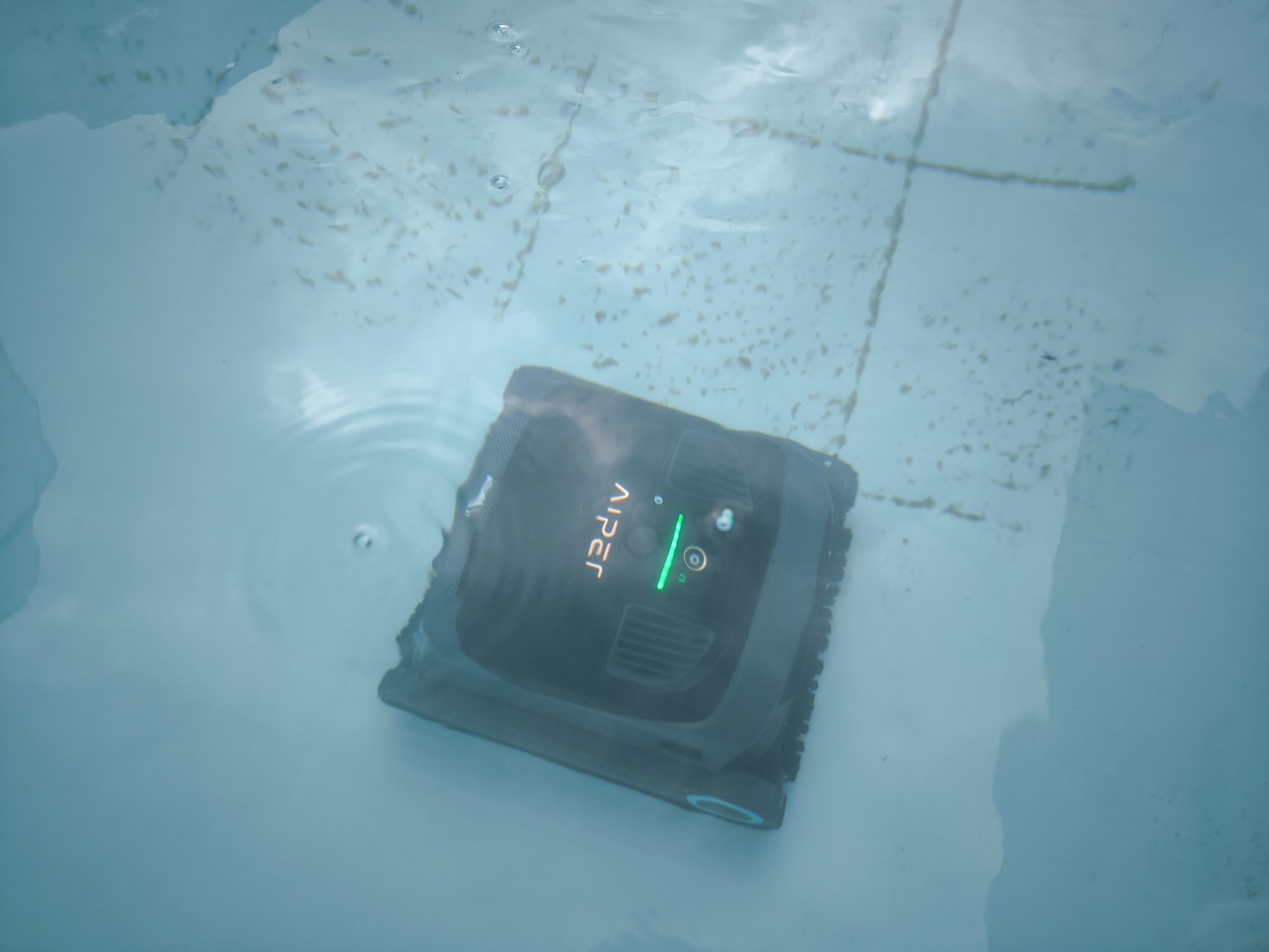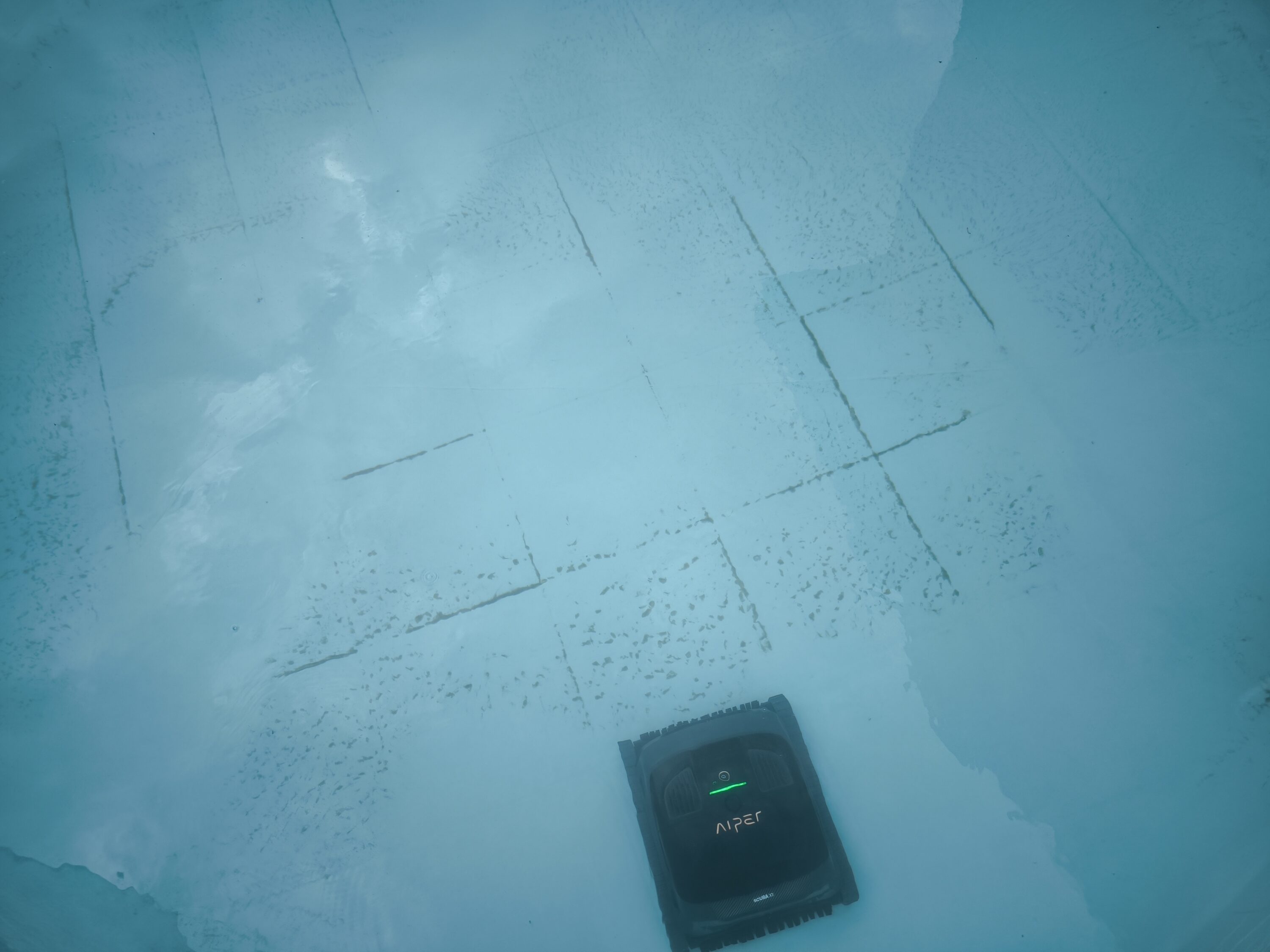 Im Folgenden gehen wir speziell auf die Reinigungsvorgänge ein, die der AIPER Scuba X1 bereithält. Dabei unterscheiden wir zwischen den Ergebnissen am Boden und an der Wand – hoch bis zur Wasserlinie. Nach dem Aufladen heißt es also direkt: Abfahrt – oder für den Poolroboter: Ab ins kühle Nass!
