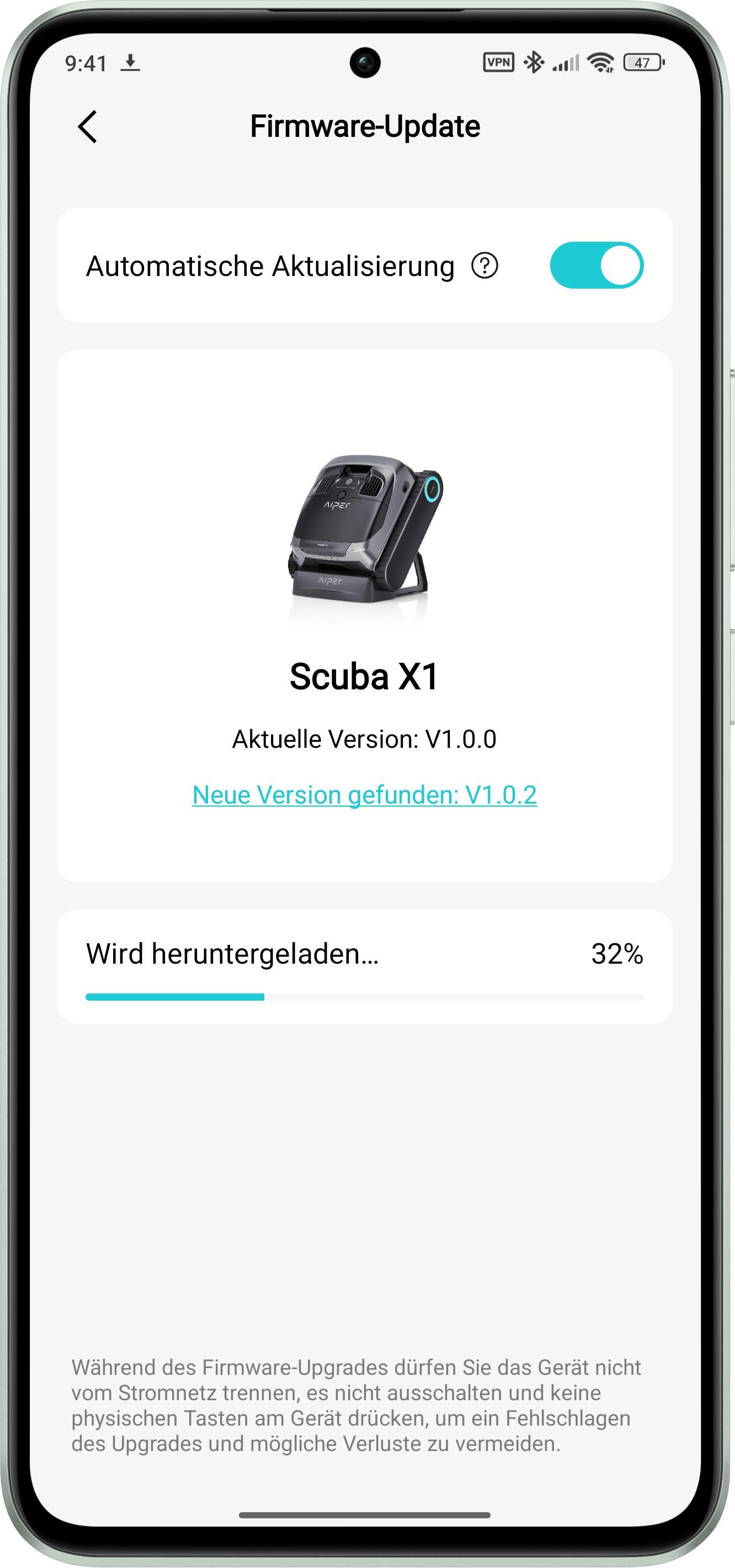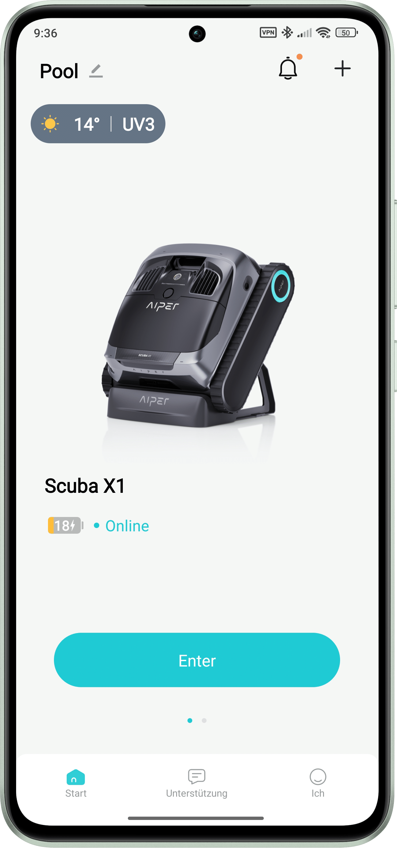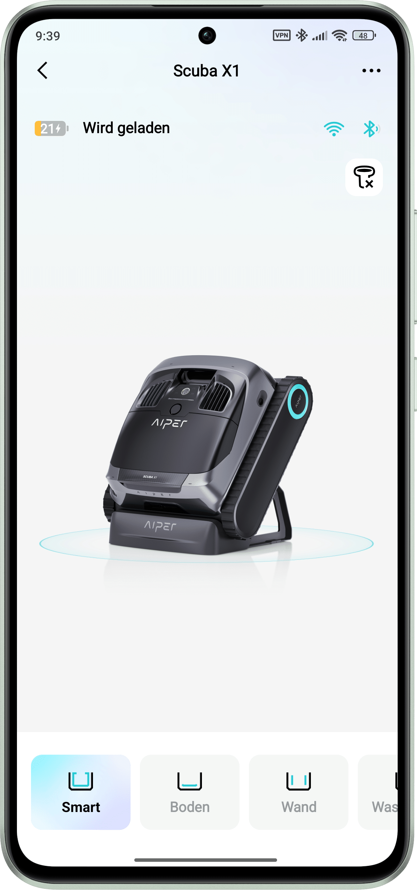 Zur Steuerung des AIPER Scuba X1 bietet der Hersteller zusätzlich eine App mit weiteren Funktionen für den Poolroboter an. Die App steht sowohl für Android wie auch für IOS zur Verfügung. Sobald der Account beim Hersteller eingerichtet ist und der Poolroboter per QR-Code oder Bluetooth gekoppelt wurde, lässt er sich sofort ohne Einschränkungen nutzen.
