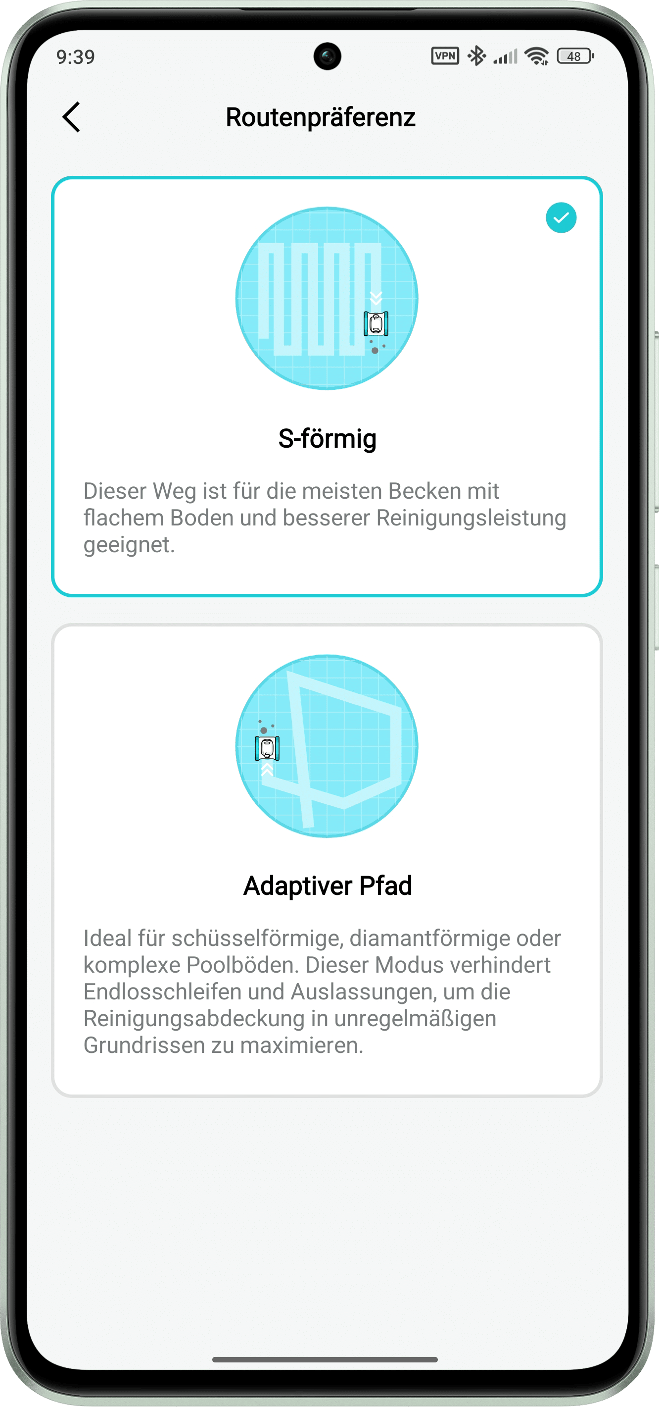 Wie im Test des AIPER Surfer S2 bereits aufgezeigt, wirkt die Benutzeroberfläche der App modern und zeitgemäß. In kürzester Zeit dürfte sich jeder zurechtfinden, wenngleich sich an manchen Stellen noch verbesserungswürdige Übersetzungen finden lassen.