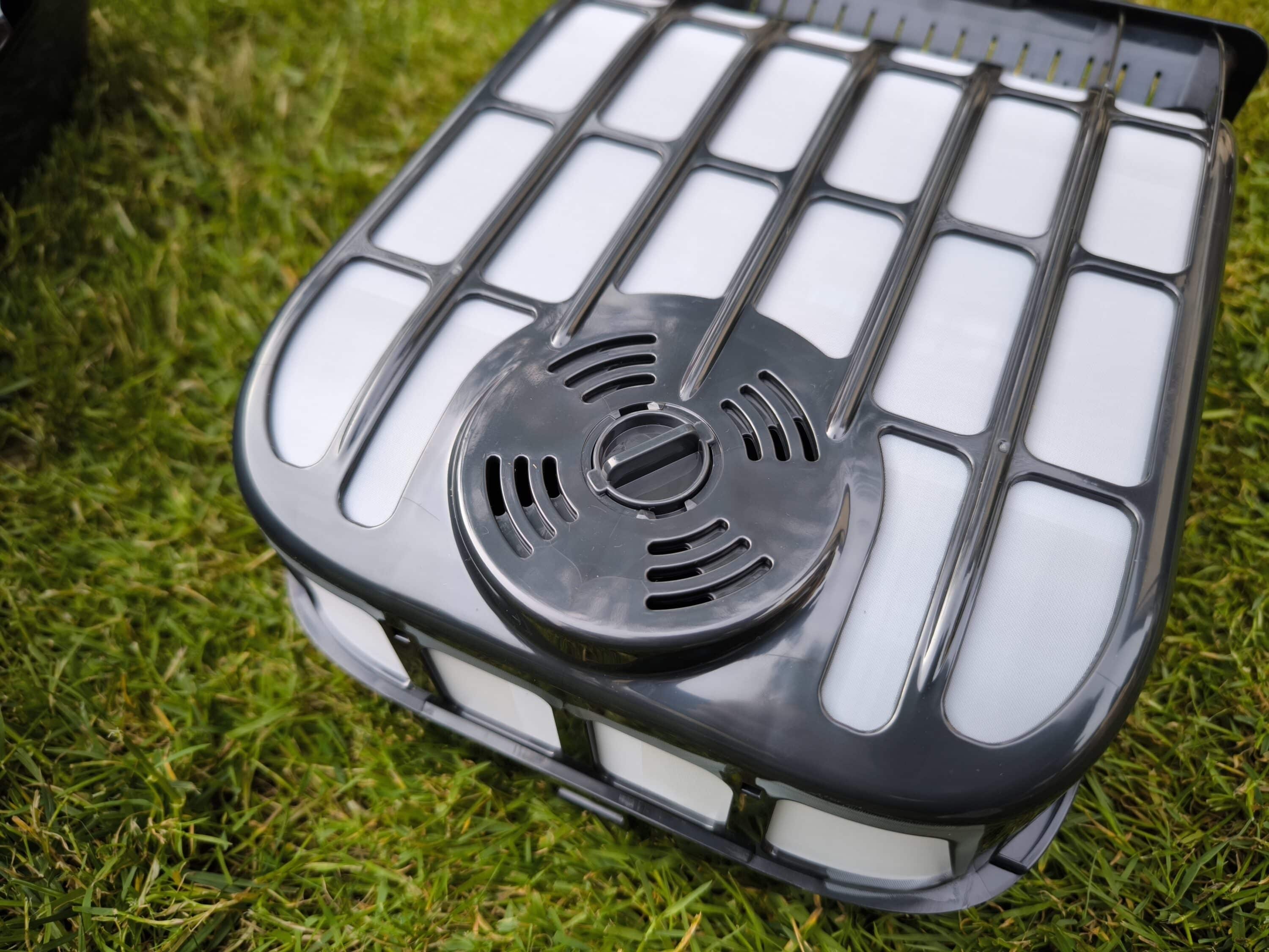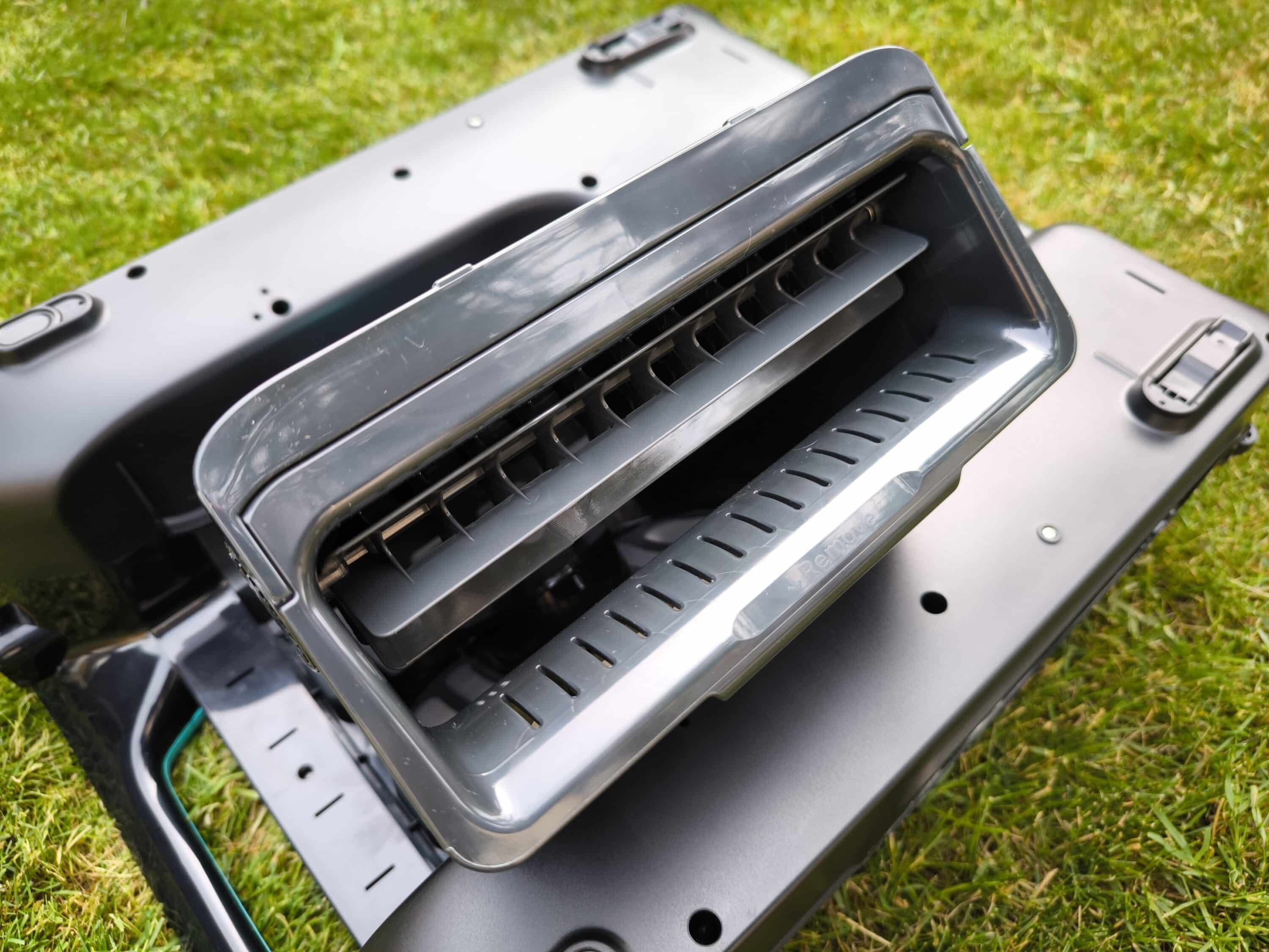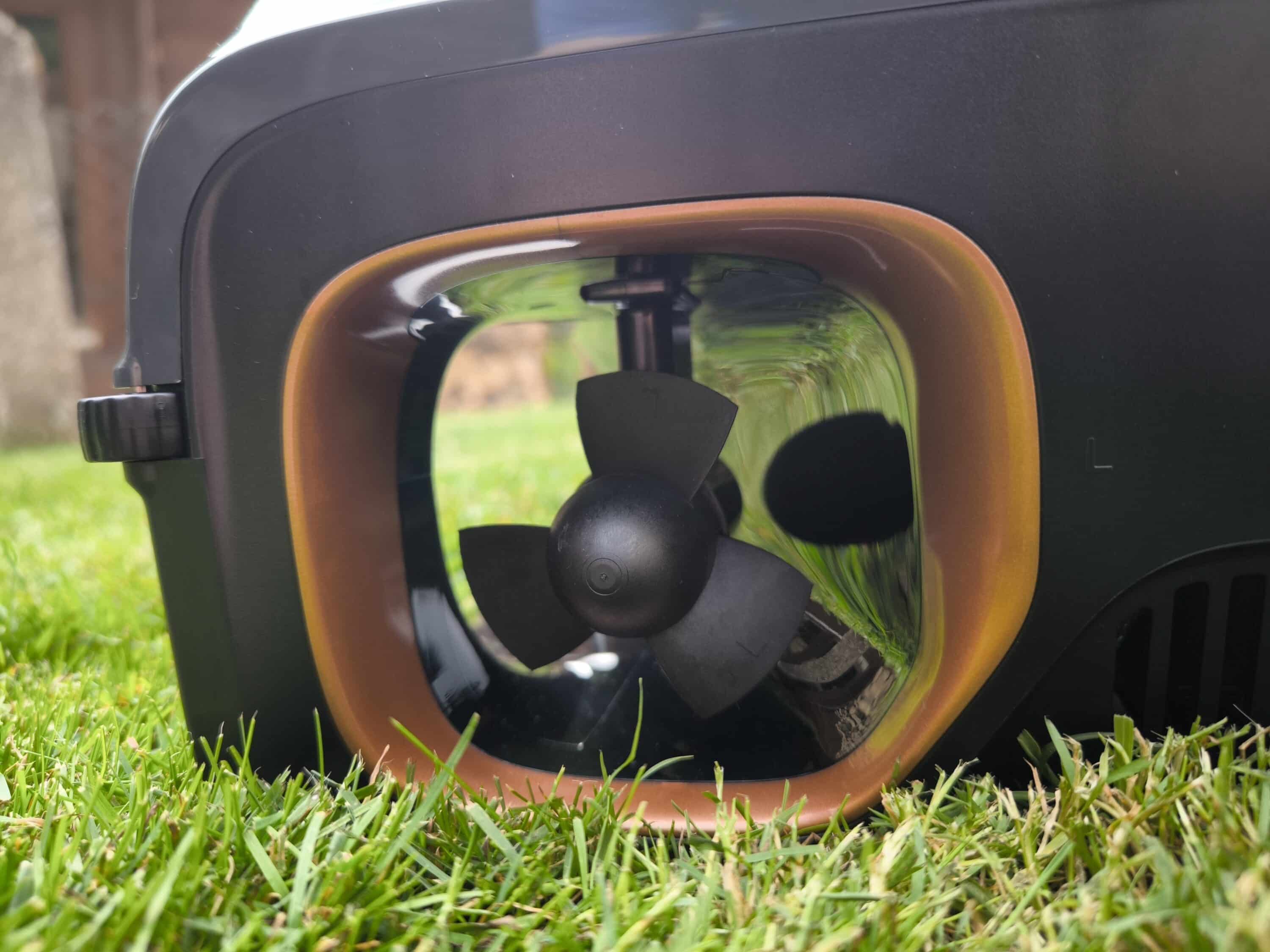 Kommen wir zu den harten Fakten des AIPER Surfer S2, mit anderen Worten: Was kann das Teil? Das großflächige Solarpanel ist unverändert geblieben, verfügt jedoch im Gegensatz zum Vorgängermodell nicht mehr über eine Aussparung in der Mitte. Beim Surfer S1 ließ sich schließlich das gesamte Deck nach hinten schieben, um zum Filterkorb zu gelangen. Dieses Feature ist beim neuen Modell nicht mehr vorhanden, da sich der Filterkorb nun von vorne entnehmen lässt. Weiterhin bleiben es grundsätzlich drei bürstenlose Motoren. Zwei davon dienen dem Antrieb der Propeller und einer dem Laufrad.