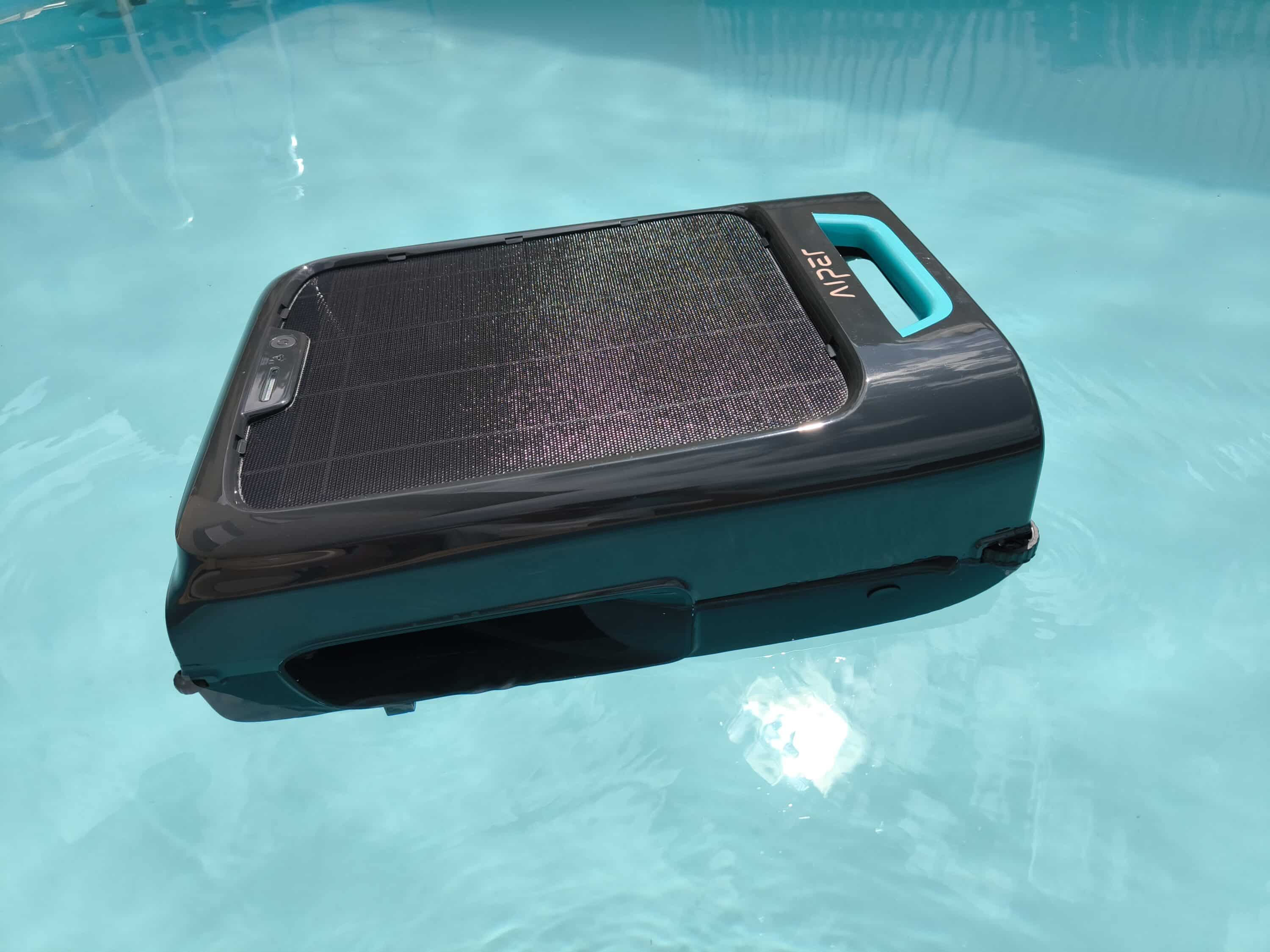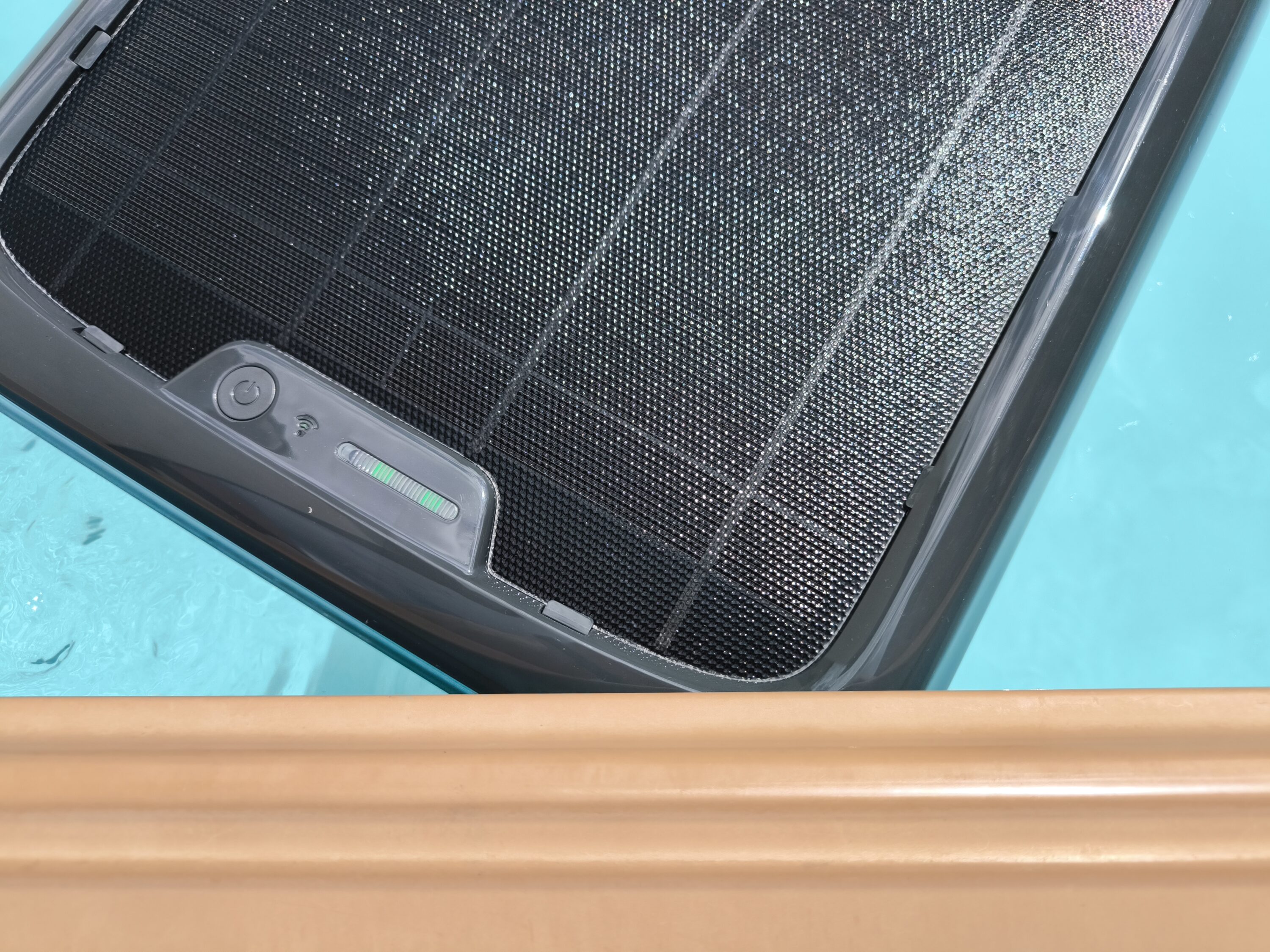 Was die Navigation betrifft, bestehen nach aktuellem Stand noch immer keine festen Bewegungsmuster. Dementsprechend bewegt sich der AIPER Surfer S2 kontinuierlich im Becken und lenkt beim Annähern an eine Wand in eine andere Richtung. Selbiges gilt dank Ultraschallsensoren auch für das Umfahren von Personen. Grundsätzlich hat dies beim Vorgängermodell bereits sehr gut funktioniert, weswegen uns hier keine wesentliche Verbesserung auffallen würde. Das Gleiche gilt für das Aufladen per Solarstrom während der Reinigung. Hier hat uns bereits der AIPER Surfer S1 mit einer Laufleistung von bis zu 12 Stunden überzeugt. Auch wenn der Hersteller die Laufzeit nun um das Dreifache verbessert hat, so dürfte dies in sonnenreichen Umgebungen praktisch nur eine untergeordnete Rolle spielen.