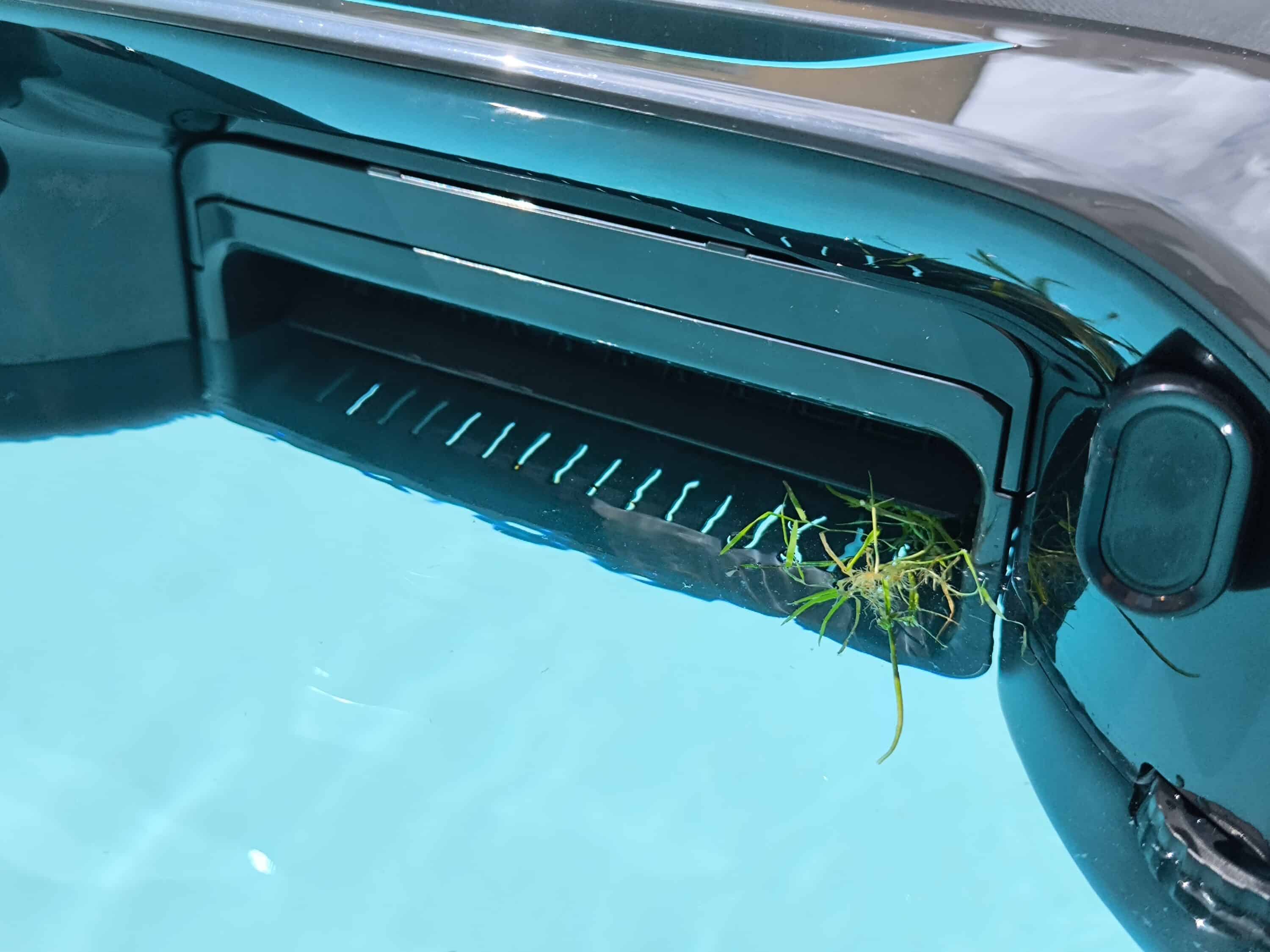 Nun soll sich im Praxistest zeigen, was der AIPER Surfer S2 kann. Sobald er also auf der Wasseroberfläche aufliegt, fährt der Poolroboter konsequent querbeet durch das Becken. Dabei saugt er zuverlässig Partikel unterschiedlichster Größe in den Filterkorb. Am besten gefällt uns tatsächlich das geräuscharme Laufrad des Filterkorbs. Im Vergleich zum Vorgängermodell, das deutlich hörbar durchs Becken glitt, arbeitet der Surfer S2 wesentlich leiser. An dieser Stelle hat AIPER eindeutig den richtigen Nerv getroffen!