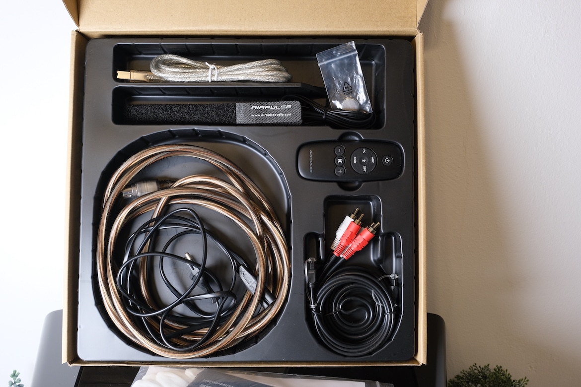 Die Airpulse A100 sind schnell und einfach eingerichtet. Stromkabel dran, Lautsprecher miteinander verbinden und an die entsprechende Audioquelle anschließen. Schon kann es losgehen.