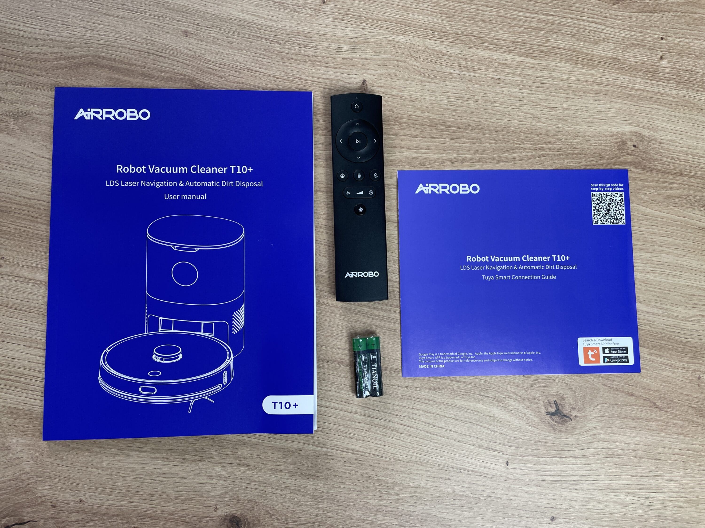 Da sich der T10+ auch über eine Fernbedienung steuern lässt, ist diese ebenfalls mit zwei passenden Batterien im Lieferumfang enthalten. Für die anfängliche Einrichtung und den weiteren Gebrauch hat AIRROBO eine Bedienungsanleitung angefertigt, welche die einzelnen Schritte sehr gut erklärt und zur Hilfe mit Bildern ausgestattet ist. Auch für die Einrichtung der Tuya App wurde eine Anleitung auf verschiedenen Sprachen verfasst und begleitet den Anwender damit sicher durch die Ersteinrichtung.