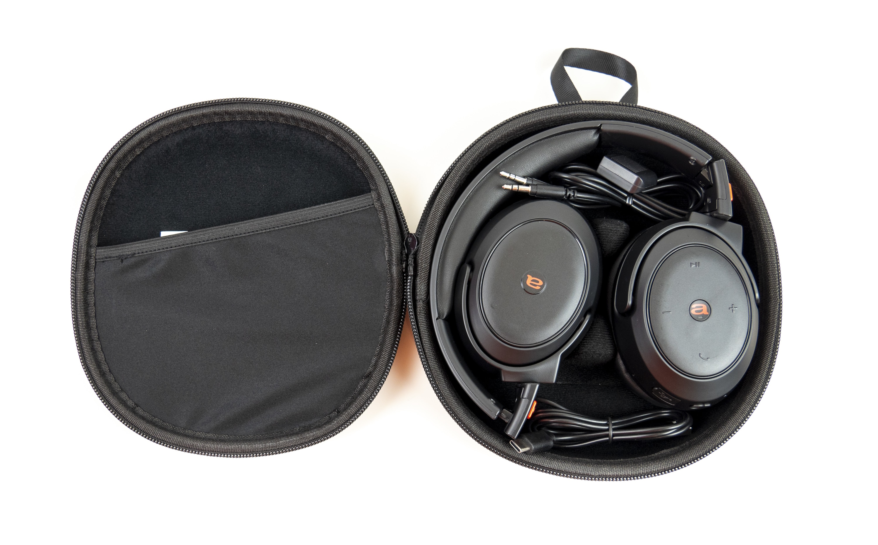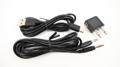 Auch beim Umfang des Zubehörs hat sich Aiwa nicht lumpen lassen. So hat die Audio-Marke den Kopfhörer nicht nur faltbar gemacht, sondern liefert auch gleich den passenden Hartschalenkoffer dazu. Hinzukommen ein 1,5 Meter langes Audiokabel mit 3,5-Millimeter-Klinkenstecker sowie ein ebenso langes USB-Lade- und Datenkabel mit USB-Typ-C- bzw. USB-Typ-A-Steckern.