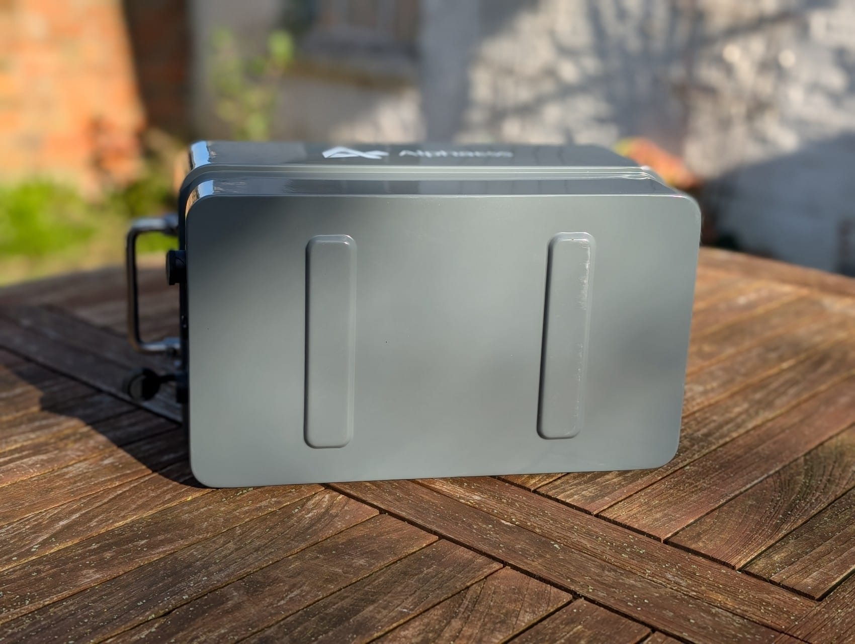 Wie bereits erwähnt stellte uns AlphaESS für den Test ein Modell des Zusatzakkus Vitamate VM1000 zur Verfügung. Dessen Optik unterscheidet sich komischerweise deutlich von der der Vitapower. Dennoch stimmt auch hier die Verarbeitungsqualität. AlphaESS setzt komplett auf Metall und sogt dank einklappbarer seitlicher Griffe für einen unkomplizierten Transport.