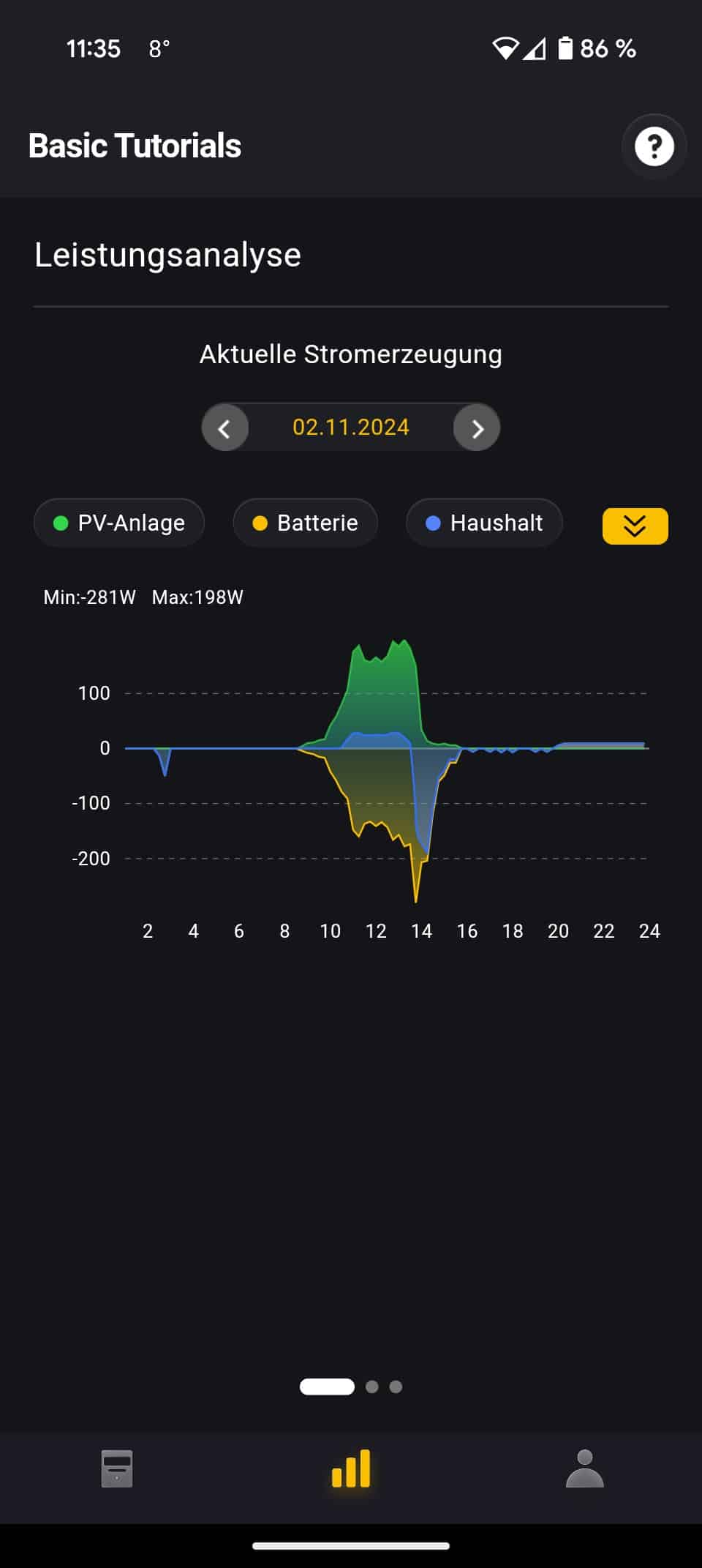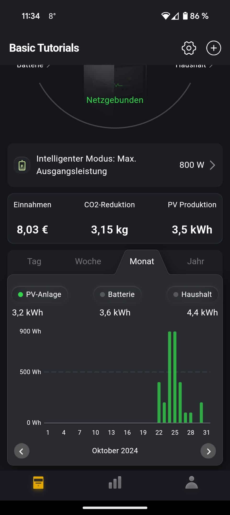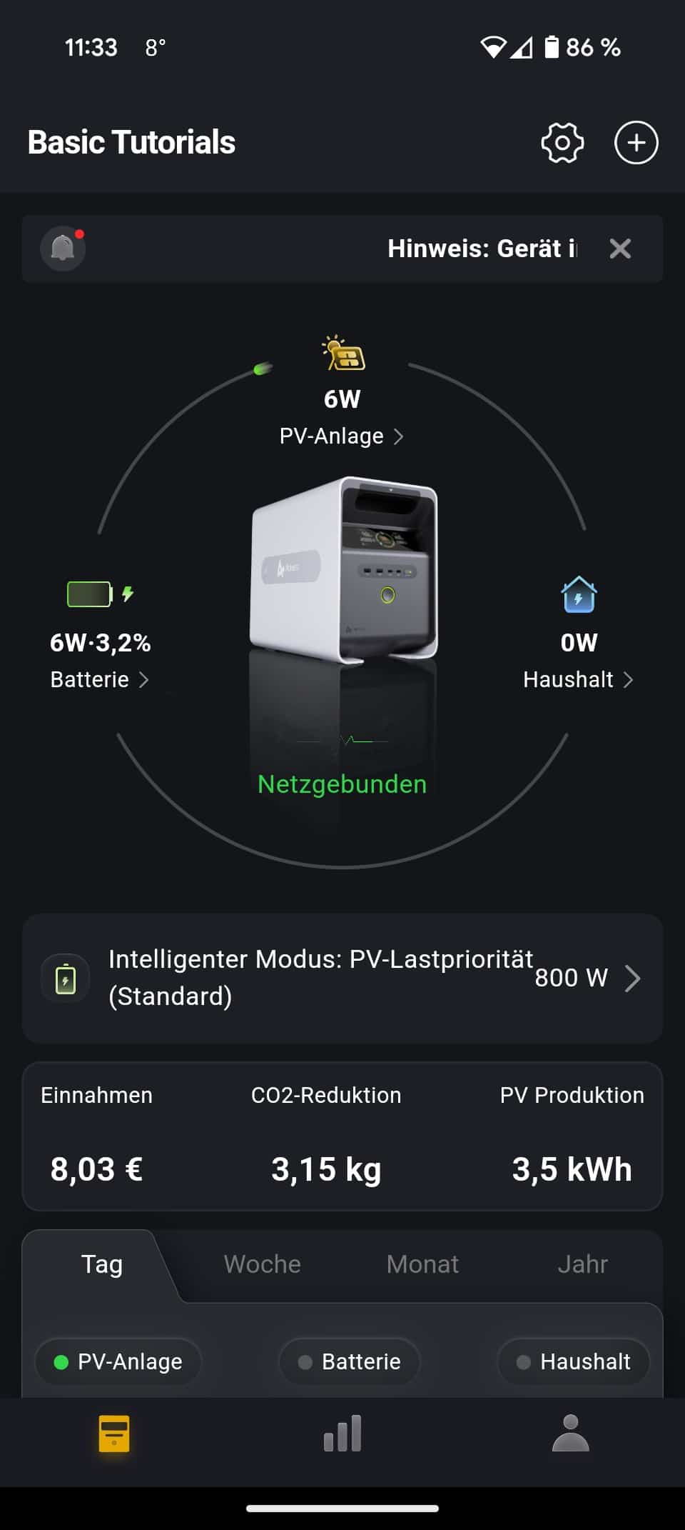 Hat die Vitapower ihren Betrieb aufgenommen, geht es in der AlphaLite App weiter. Hier fügt man den Energiespeicher einfach als neues Gerät hinzu. Das funktionierte schnell und unkompliziert. Die App selbst überzeugte im Test mit einer guten Übersicht und vielen wichtigen Informationen. Insbesondere Statistikfreunde können sich hier austoben und Daten des Speichers analysieren.