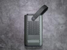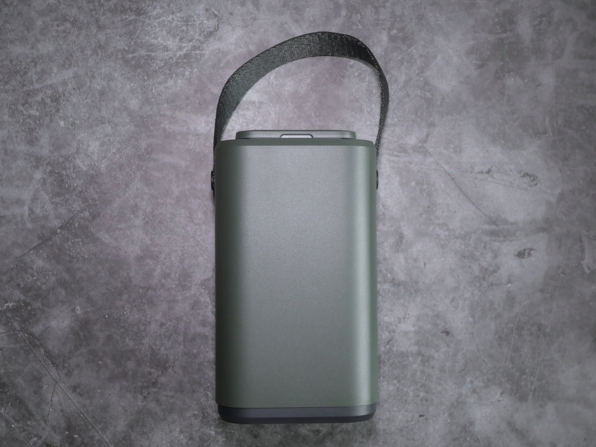 Die Anker 548 Powerbank ist überwiegend Olivgrün und wirkt damit auch wie ein Gerät für den Outdoor-Bereich. Am oberen Ende ist zudem eine schwarze Trageschlaufe befestigt. Die Powerbank besitzt eine quadratische Grundfläche von 11,6 x 11,6 cm und ist 20,7 cm hoch. Mit einem Gewicht von 2,34 kg ist sie keinesfalls leicht, lässt sich aber noch gut transportieren.
