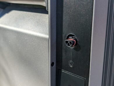 Was alles verbessert wurde, klären wir später. An der Vorderseite des Systems befindet sich eine schwarze Leiste in Hochglanzoptik mit zwei Bedientasten. Für die umfangreiche Steuerung ist die Anker SOLIX App allerdings unerlässlich. Auf diese gehen wir ebenfalls später ein. An der Rückseite befinden sich wiederum die vier MC4-Steckerpaare über die der durch die PV-Einheiten gesammelte Strom in den Speicher gelangt.