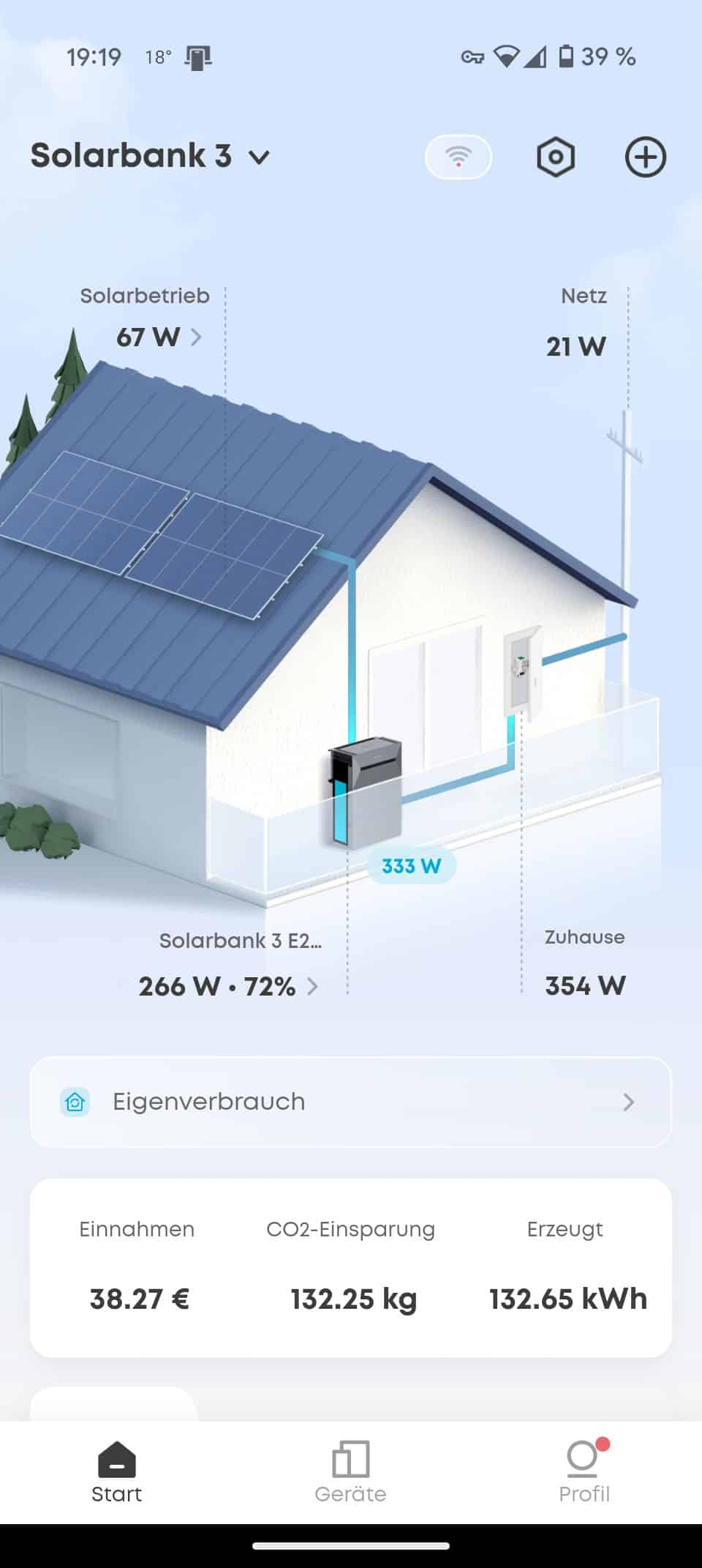 Achten muss man aber auch auf die tatsächliche Einspeiseleistung. Hier liegt das Maximum in Deutschland bei 800 W. Über rechtliche Konsequenzen müsst ihr euch aber nicht den Kopf zerbrechen. Schließlich sorgt der integrierte Wechselrichter dafür, dass mehr als 800 W gar nicht erst eingespeist werden können. Betreibt ihr die Solarbank 3 Pro hingegen als waschechte PV-Anlage, seid ihr an diese Begrenzungen nicht gebunden.