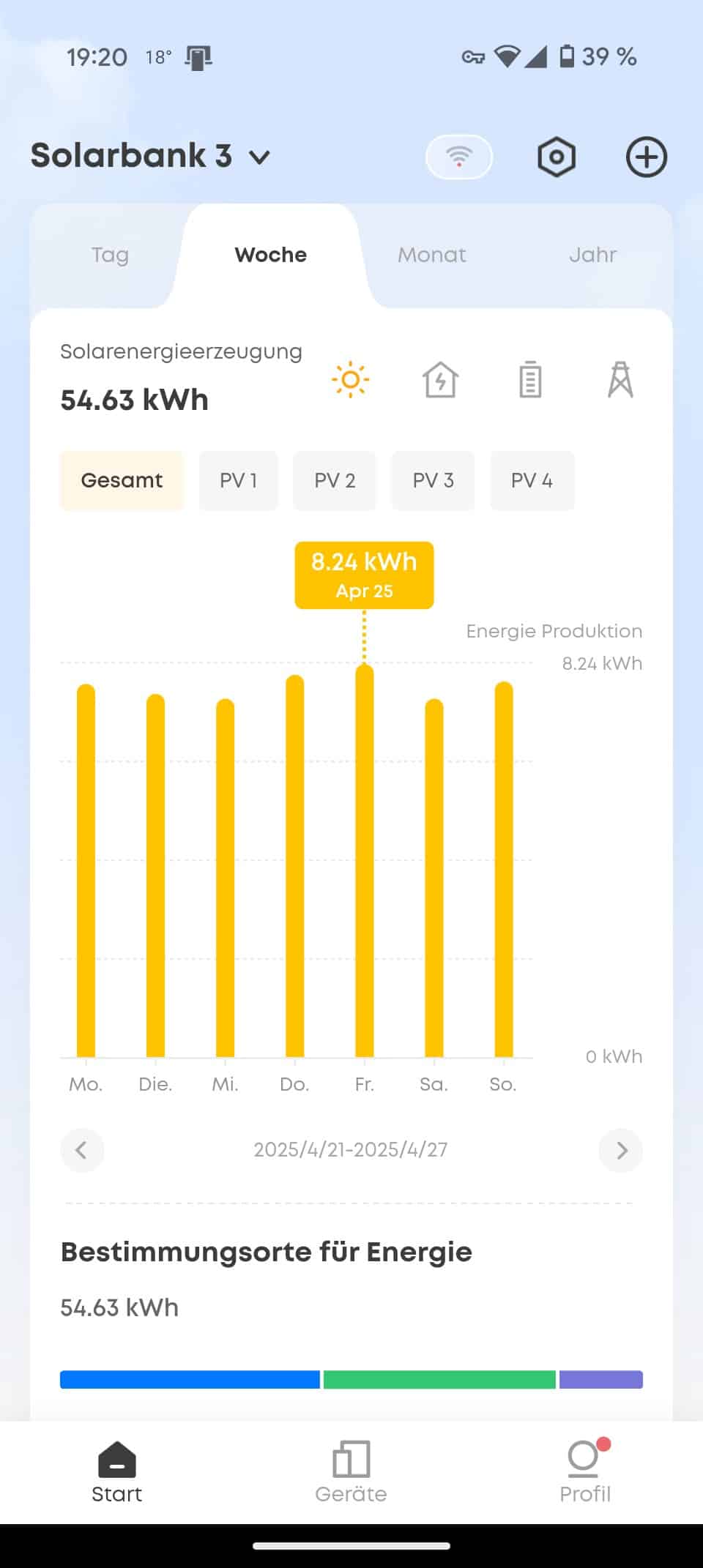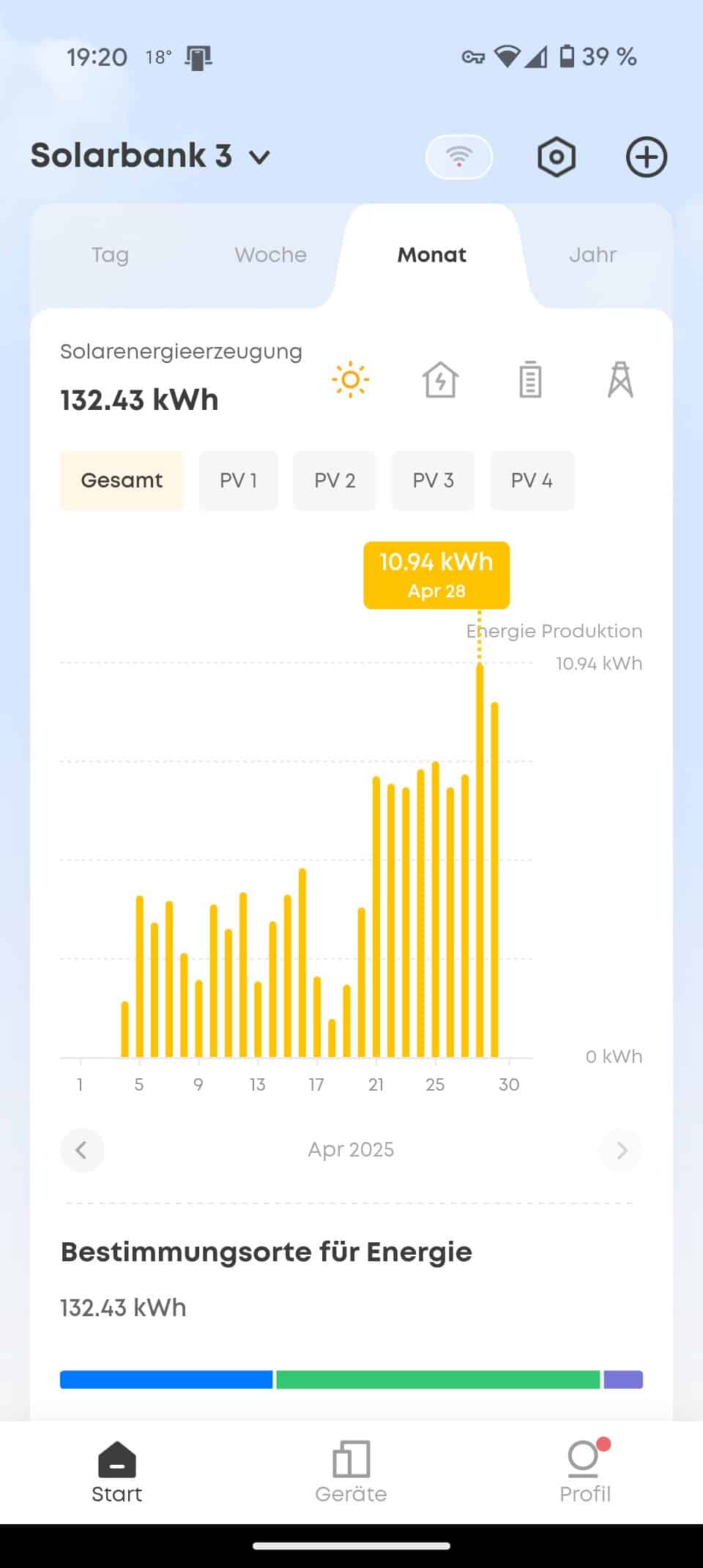 Über die vier Anschlusspaare könnt ihr dann noch die Solarpaneele anschließen und am Smartphone geht es weiter. Hier das System über die Anker SOLIX App hinzufügen und es kann losgehen. Das ist waschechtes Plug n Play und sorgt für einen erfreulich unkomplizierten Einstieg in die Welt der PV-Energie.
