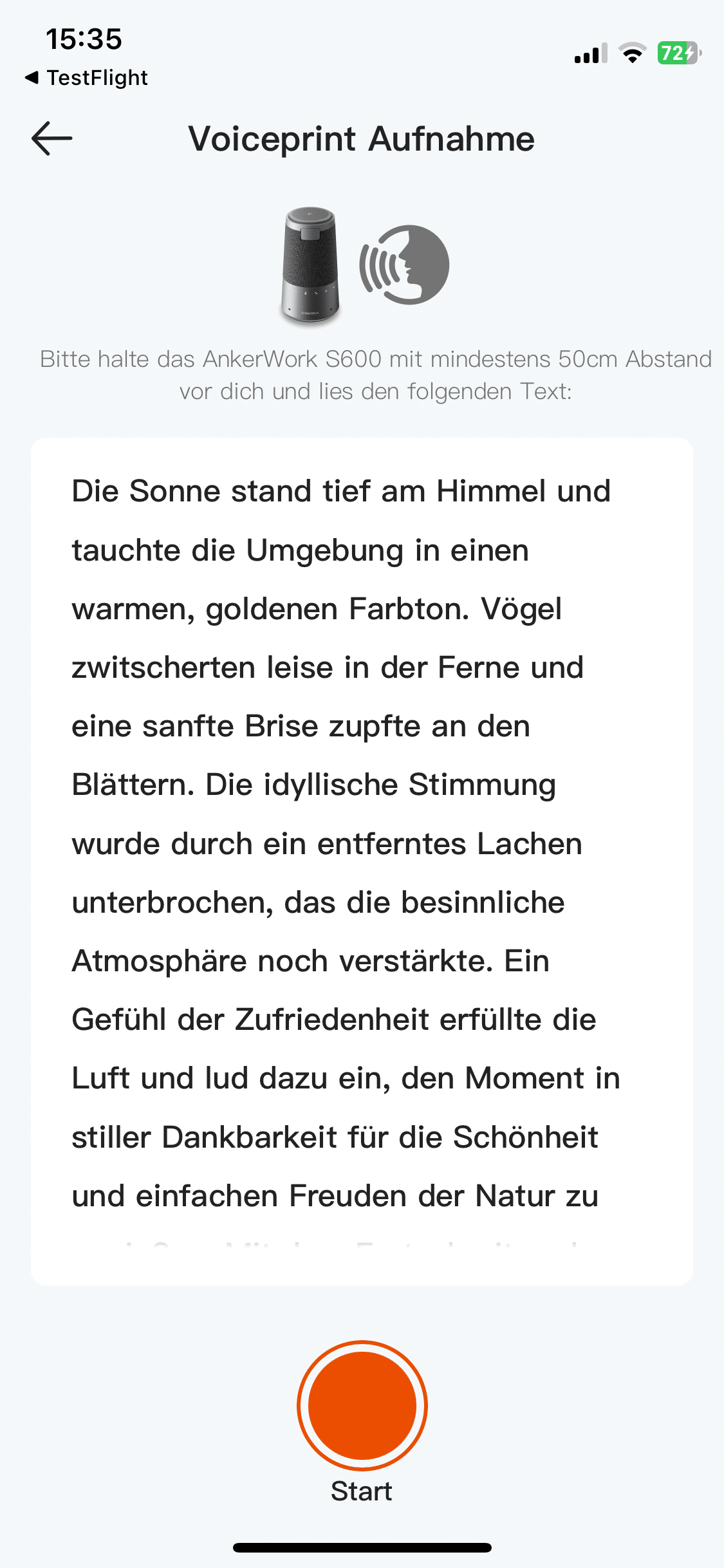 Um deine Aussprache zu analysieren, musst du einfach nur einen Text vorlesen, der dir von der App vorgegeben wird. Leider lässt sich bislang nur eine Stimme auf dem Gerät speichern. Allerdings kann man davon ausgehen, dass Anker mit einem entsprechenden Update nachlegen wird. Ansonsten wäre das eine echte Achillesferse für das Gerät. Schließlich ließe sich das praktische Noise-Cancelling ansonsten von nur einer Person nutzen.
