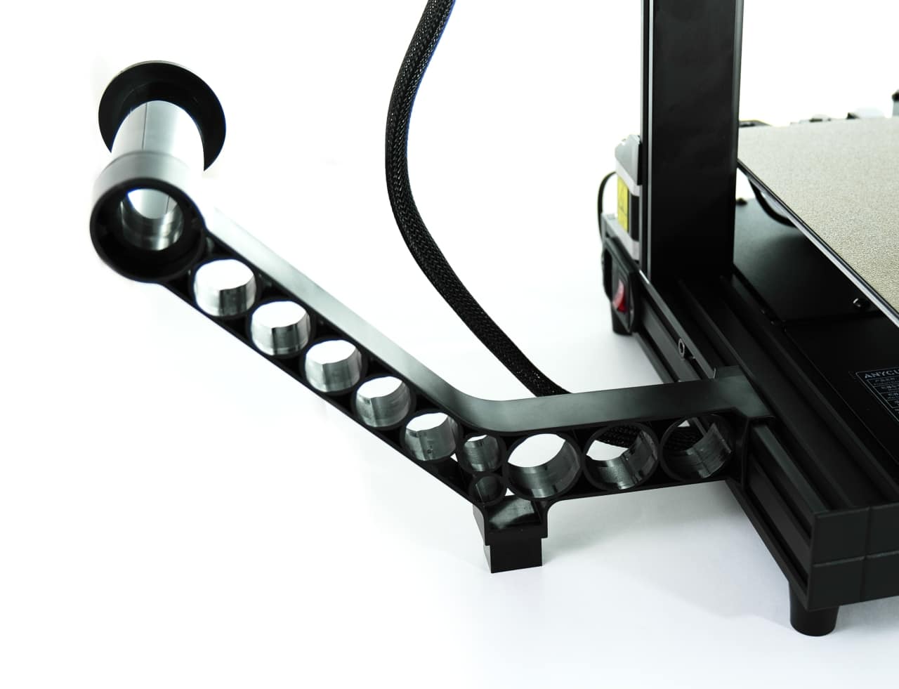 Die mitgelieferte Anleitung führt einen Schritt für Schritt durch den Aufbauprozess. Zunächst wird der Rahmen mit der Z-Achse mit der Basis verschraubt und anschließend die Druckplatte aufgesetzt. Als Nächstes werden der Extruder, das Display und der Filamentsensor verschraubt. Abschließend müssen dann nur noch der Spulenhalter seitlich eingesetzt und alle Bauteile, beispielsweise die Schrittmotoren, angeschlossen werden. Dazu hat Anycubic die Kabel mit passenden Markern versehen, hier kann also kaum etwas schiefgehen.