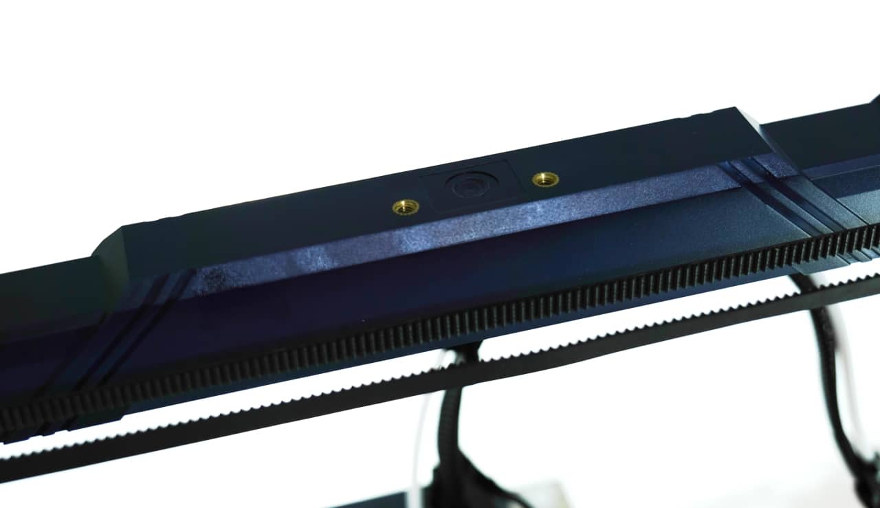 Nach dem Aufbau kann man die Zahnriemen für die X- und Y-Achse noch durch die vorgesehenen Drehknöpfe nachspannen oder lockern, in unserem Fall war das aber gar nicht nötig. Zur Einrichtung verbleibt damit nur noch die Software, die einen Schritt für Schritt durch den Prozess führt. Währenddessen wird der Drucker automatisch gelevelt, das Filament eingesetzt und ein Resonanztest durchgeführt. Dabei steuert der Drucker alle Motoren mit verschiedenen, extremen Befehlen an, um Vibrationen zu ermitteln und diese künftig zu kompensieren. Das soll laut Anycubic die Qualität beim Drucken mit hoher Geschwindigkeit verbessern.