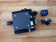 Vor der Inbetriebnahme werden noch einmal die Laufrollen und Schraubverbindungen kontrolliert, anschließend kann das beiligende Kaltgerätekabel eingesteckt werden. Der Kobra 2 verfügt über einen Netzteil-Switch und kann mit einer Spannung von 110 oder 230 V betrieben werden. Die eingestellte Spannung ist direkt am Schalter sichtbar, bei uns waren bereits die für Deutschland benötigten 230 V eingestellt.