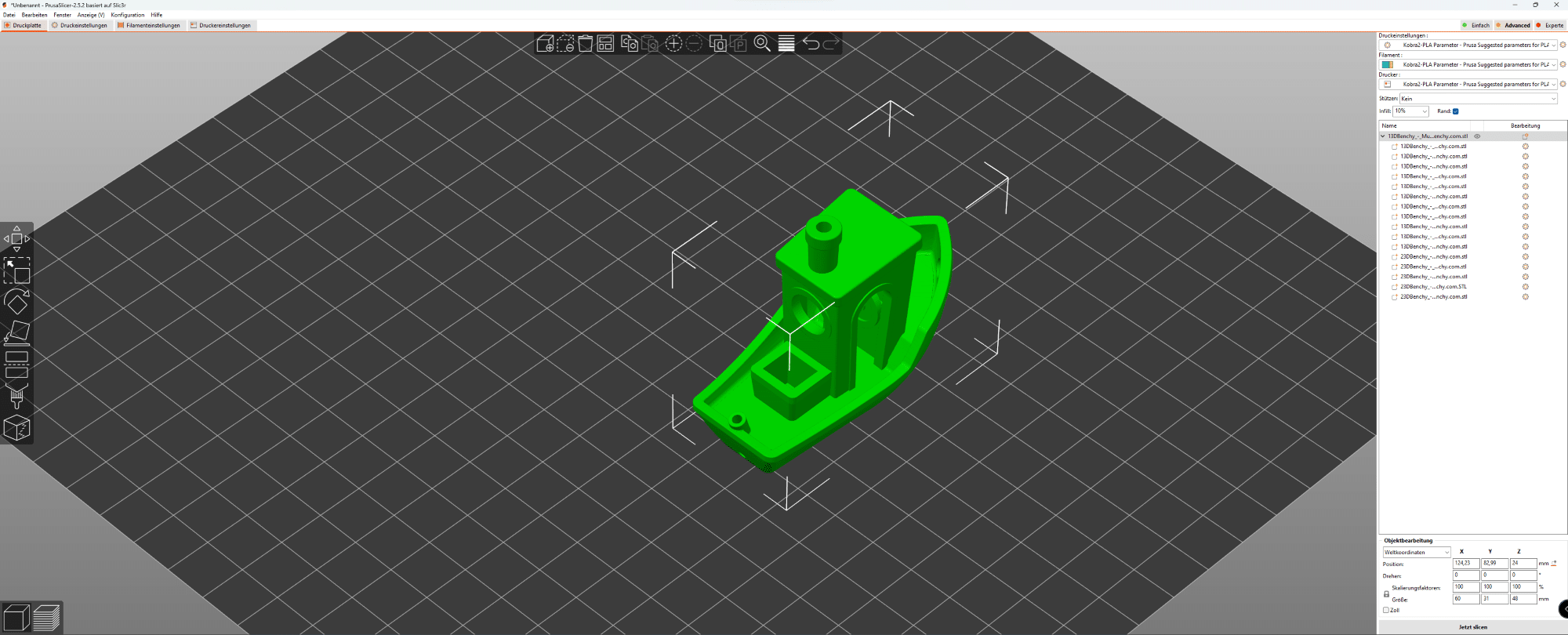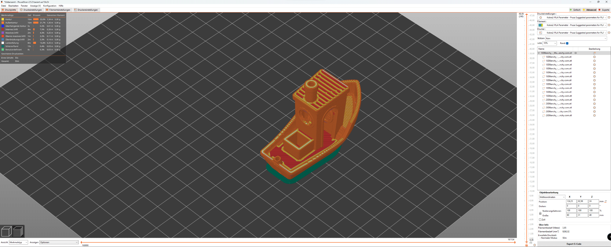 - ebenso die kostenlose Software PrusaSlicer für den Export der Druckdateien