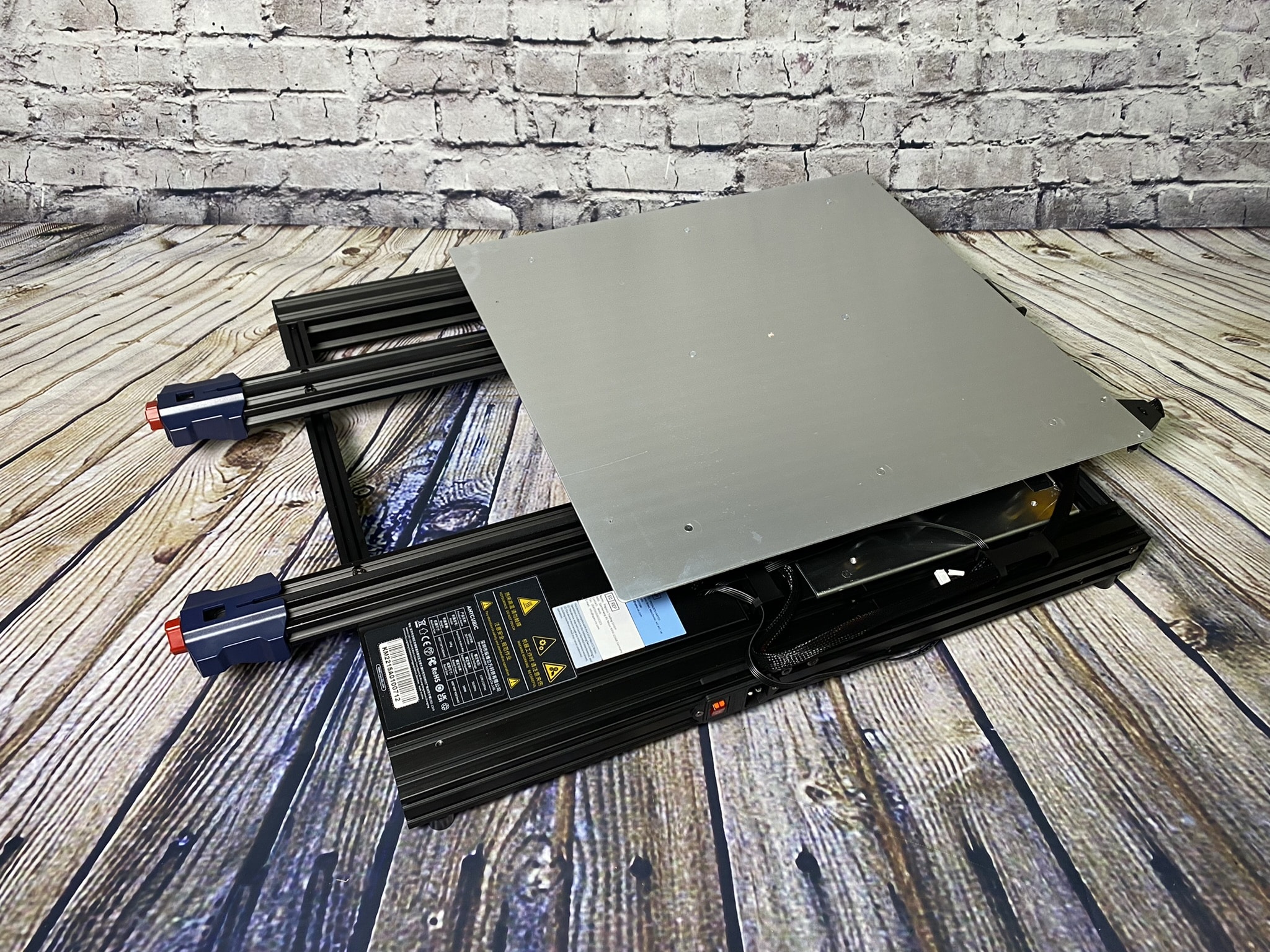 Außerdem sind die beweglichen Teile der Kobra Max mit Kabelbindern befestigt worden, die man zunächst entfernen muss. Als letztes werden die Querstreben zur Stabilisierung mit jeweils vier Schrauben pro Stange befestigt. Es fehlt nun nur noch die Druckplatte aus Glas, welche mit den sechs mitgelieferten Klammern an die Heizplatte befestigt wird. Jetzt heißt es: Stecker rein und es kann losgehen!