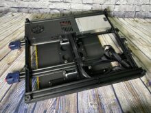Die erfahrenen Hasen im 3D-Drucker-Kosmos kennen den Aufwand einen 3D-Drucker nach der Lieferung zusammenzubauen. Beim Anycubic Kobra Max ist dies nicht so aufwendig, wie man es anhand der Größe vermuten würde. Die Base, auf welcher sich die Druckplatte befindet, besitzt an den Seiten zwei Löcher. Von unten werden dann zwei lange Schrauben durchgedreht und an der Z-Achsen-Halterung befestigt. Hat man dies erledigt, steht der 3D-Drucker schon fast fertig da. Im nächsten Schritt befestigt man das Display an der Seite sowie die Halterung für das PLA, welche zwar etwas wackelig ist, aber trotzdem ihren Zweck erfüllt. Aus Sicherheitsgründen wurden die Kabel für die Steuerung schon in Kabeltrassen vormontiert, aber an den jeweiligen Stellen noch nicht in die Anschlüsse gesteckt.