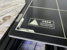 Zuletzt gibt es dann noch ein paar besondere Neuheiten, die wir nicht vergessen wollen. Damit meinen wir nicht die neuen, schick aussehenden roten Plastikabdeckungen! Hierbei handelt es sich um Räder zum Nachspannen der Riemen. Bei älteren 3D-Drucker eine nervige Wartungsaufgabe, die meistens nicht sonderlich leicht zu bewältigen ist. Der Kobra Max macht dies einfacher und handlicher, selbst unerfahrene können ohne Aufwand den 3D-Drucker nachjustieren, um für die beste Qualität des Drucks sorgen zu können. Außerdem wurde die Druckplatte an sich erneuert. Anstatt einer magnetischen Platte mit einer metallischen Auflage ist diese nun aus Glas und hat eine raue schwarze Oberfläche.
