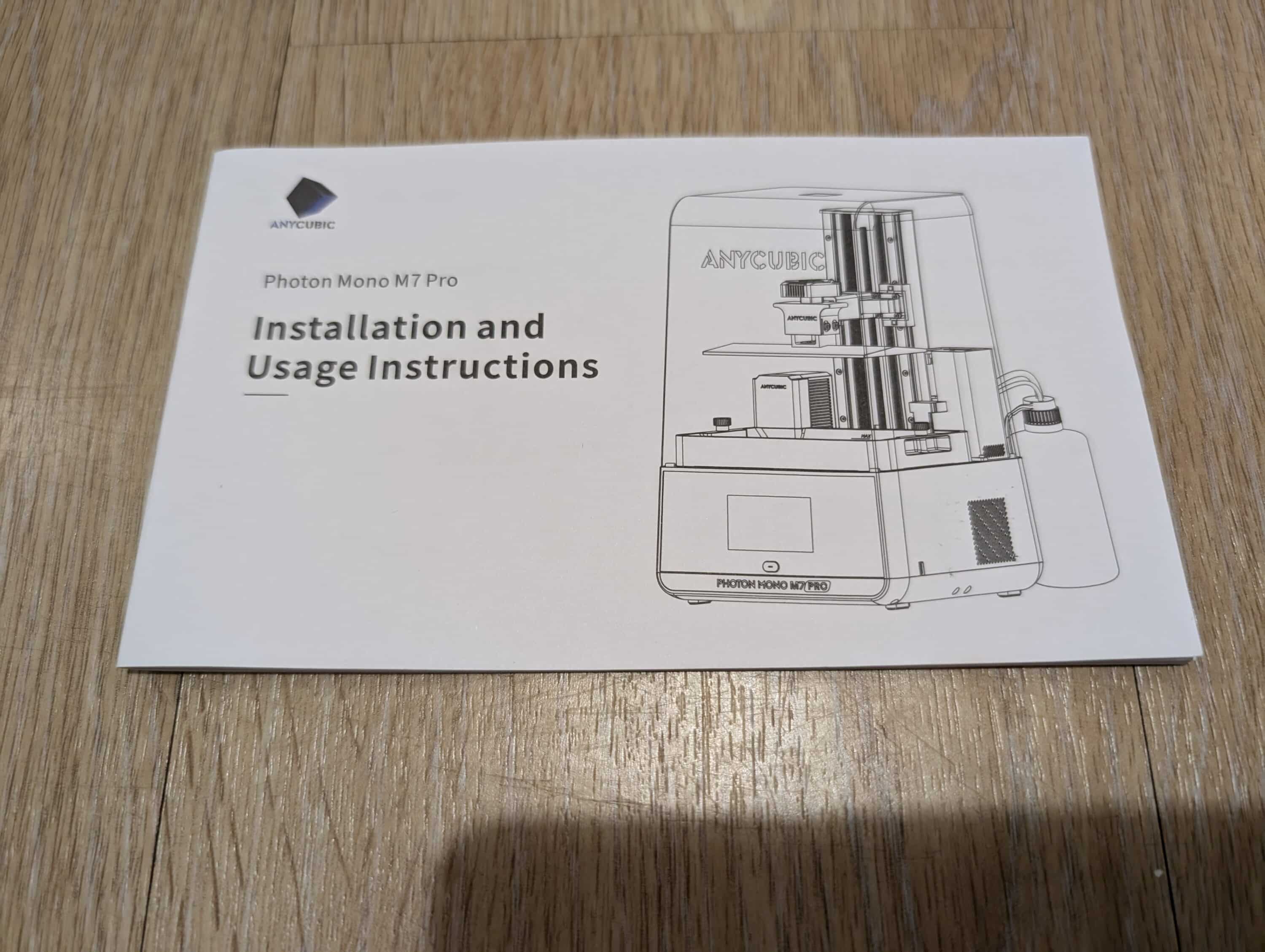 Der Anycubic Photon Mono M7 Pro kommt gut verpackt und weitgehend vormontiert an. Die beiliegende Anleitung führt in wenigen Schritten durch den Aufbauprozess, der selbst für Anfänger gut machbar ist. Einziges Manko: Sie ist leider nur auf Englisch verfasst.