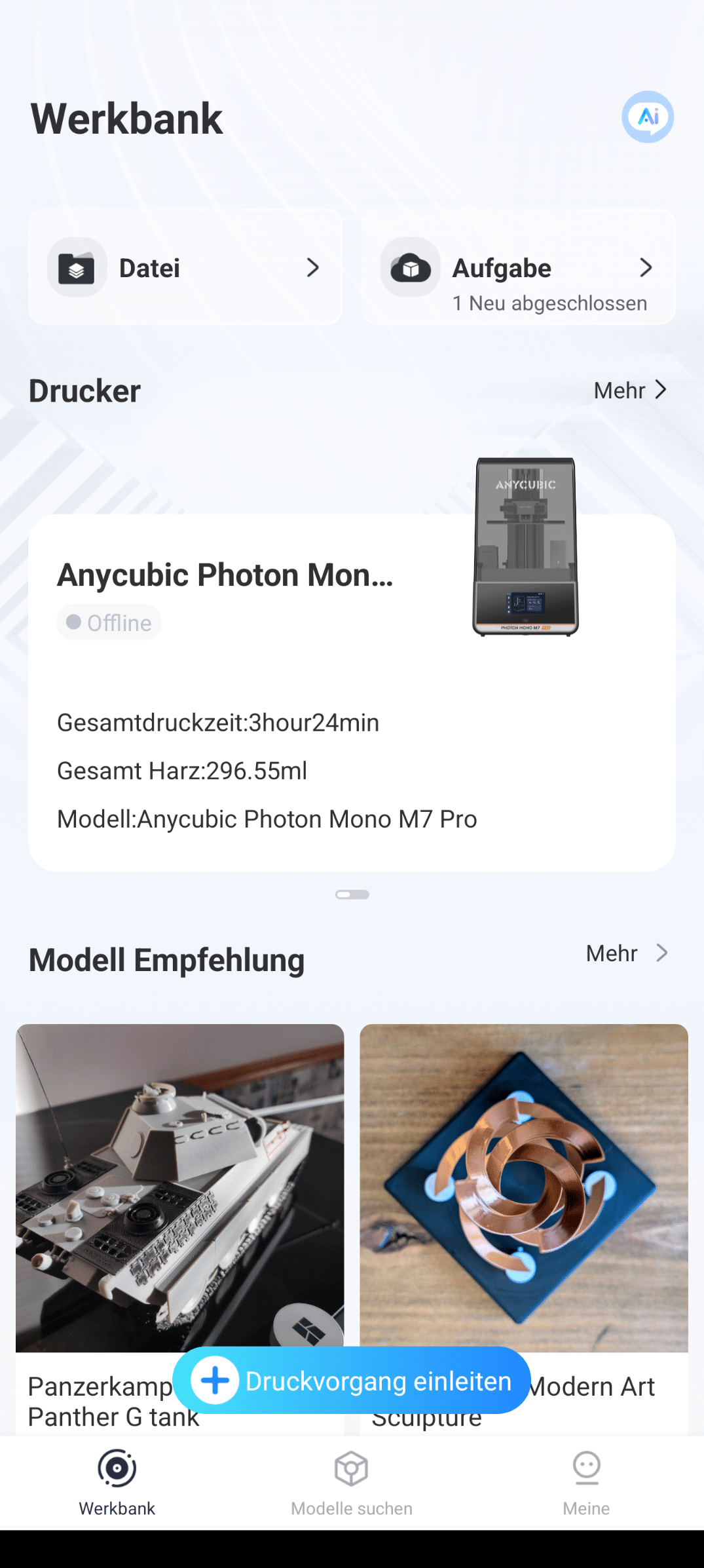 Die Anycubic App bietet eine Reihe von Funktionen, die sowohl für Anfänger als auch für erfahrene Nutzer nützlich sind. Im Gegensatz zum Anycubic Photon Workshop, der hauptsächlich zum Vorbereiten von Modellen gedacht ist, stellt die Anycubic App eher einen Begleiter dar.