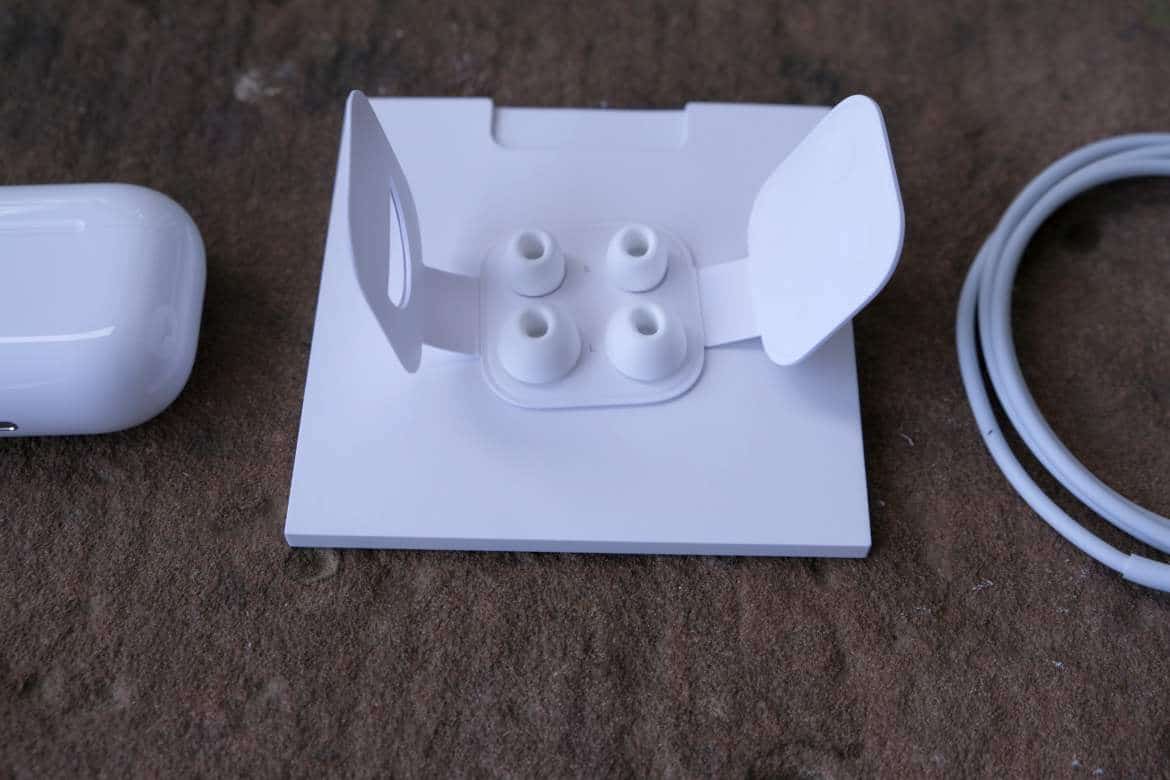 Hinzu gesellen sich zwei weitere Paare an Silikon-Ohreinsätzen, die kleiner und größer ausfallen als das vorinstallierte Paar. Damit dürfte jeder Nutzer den idealen Sitz finden. Neben der obligatorischen Anleitung rundet ein Lightning- auf USB-C Kabel den Lieferumfang ab.