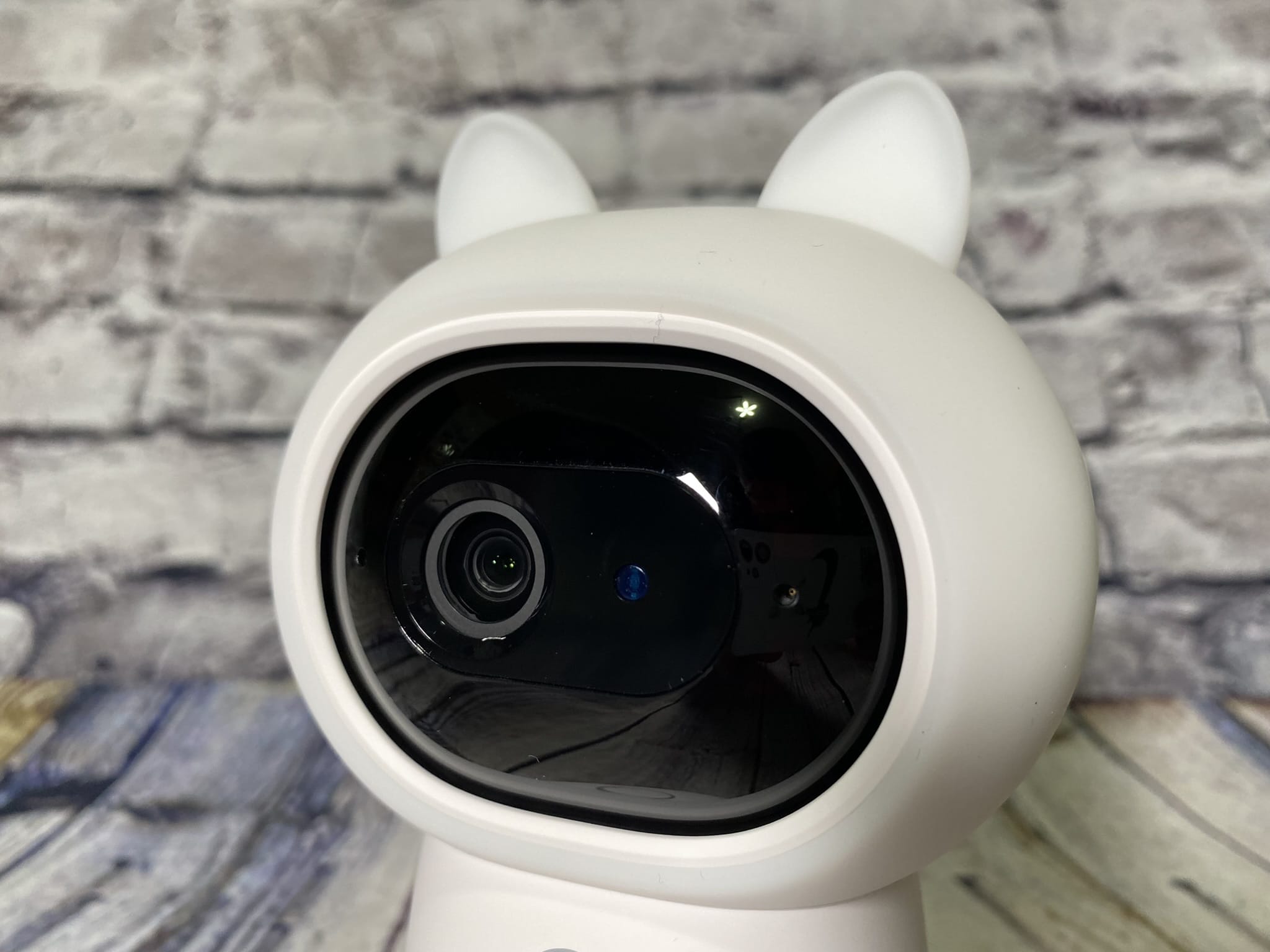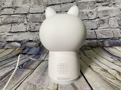 Bevor wir mit der Konfiguration starten, wollen wir erstmals einen kleinen Blick auf die Camera Hub G3 selbst werfen. Das Innenleben der niedlichen Figur ist mit einer 2K 2304 × 1296p Kamera bestückt, welche sich in einer schwarzen neigbaren Kugel befindet. Verbaut ist eine Weitwinkelkamera mit einem 110°-Blickfeld, die sich im 45° vertikalen und bis zu 340° horizontalen Winkel mithilfe von Motoren in allen Richtungen bewegen lässt. Damit werden fast 360° abgebildet – man bekommt damit ein großes Sichtfeld geboten. Außerdem besitzt die Kamera einen Helligkeitssensor mit Nachtsicht-Funktion und zwei verbaute Mikrofone.
