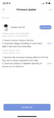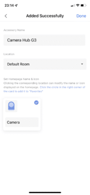 Möchte man nun die Camera Hub G3 in die App einbinden, geht man zunächst unter „Accessories“ in der unteren Leiste auf das Plus. Hier bekommt man eine große Auflistung an Geräten geboten. Hat man sein Produkt gefunden, bekommt man für dies jeweils eine kleine Anleitung. Für die Camera Hub G3 muss man zunächst nur auf den Kopplungsbutton am LED-Ring drücken. Hiernach gelangt man zu einem nächsten Bildschirm, bei dem man sein WLAN angeben muss. Zuletzt wird ein QR-Code angezeigt, welcher vor der Kamera gehalten werden muss und paar Sekunden später ist die App mit der Camera Hub G3 gekoppelt.