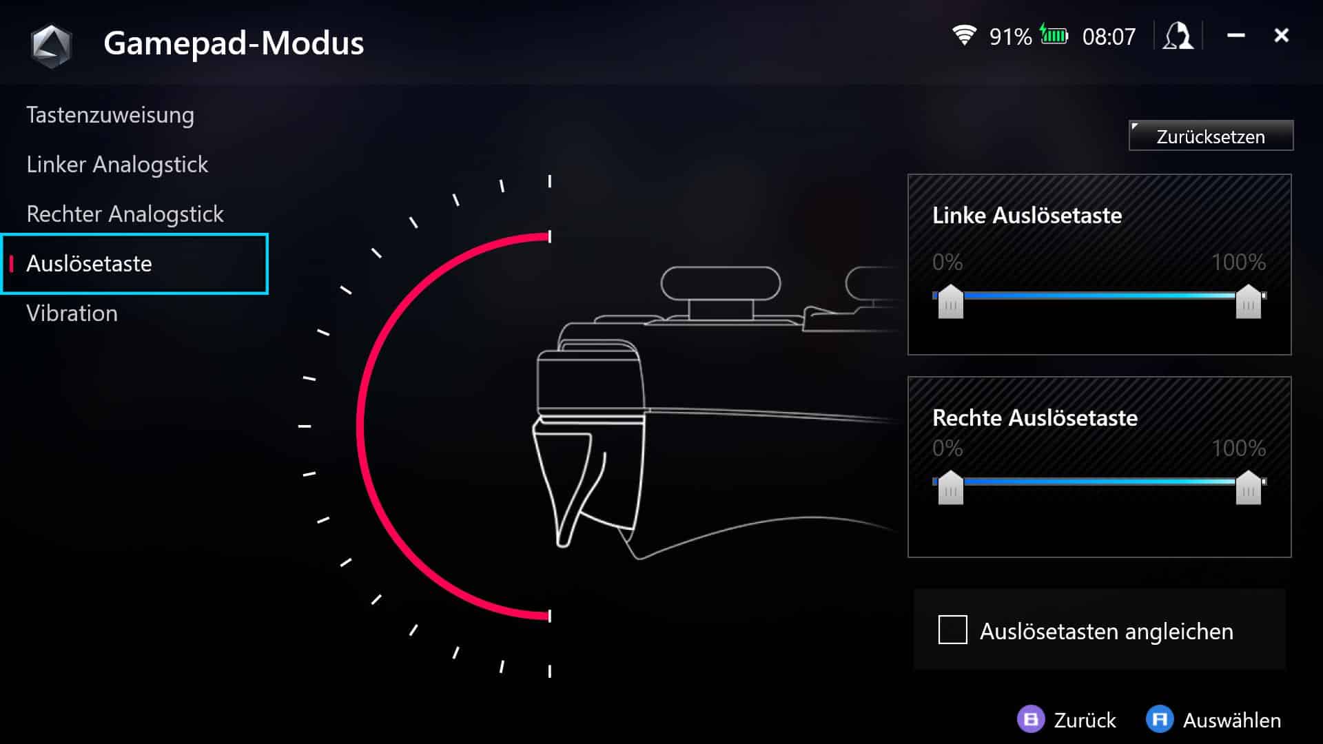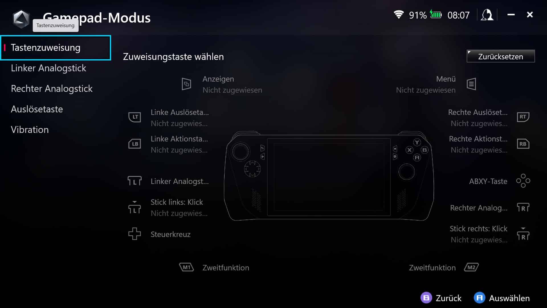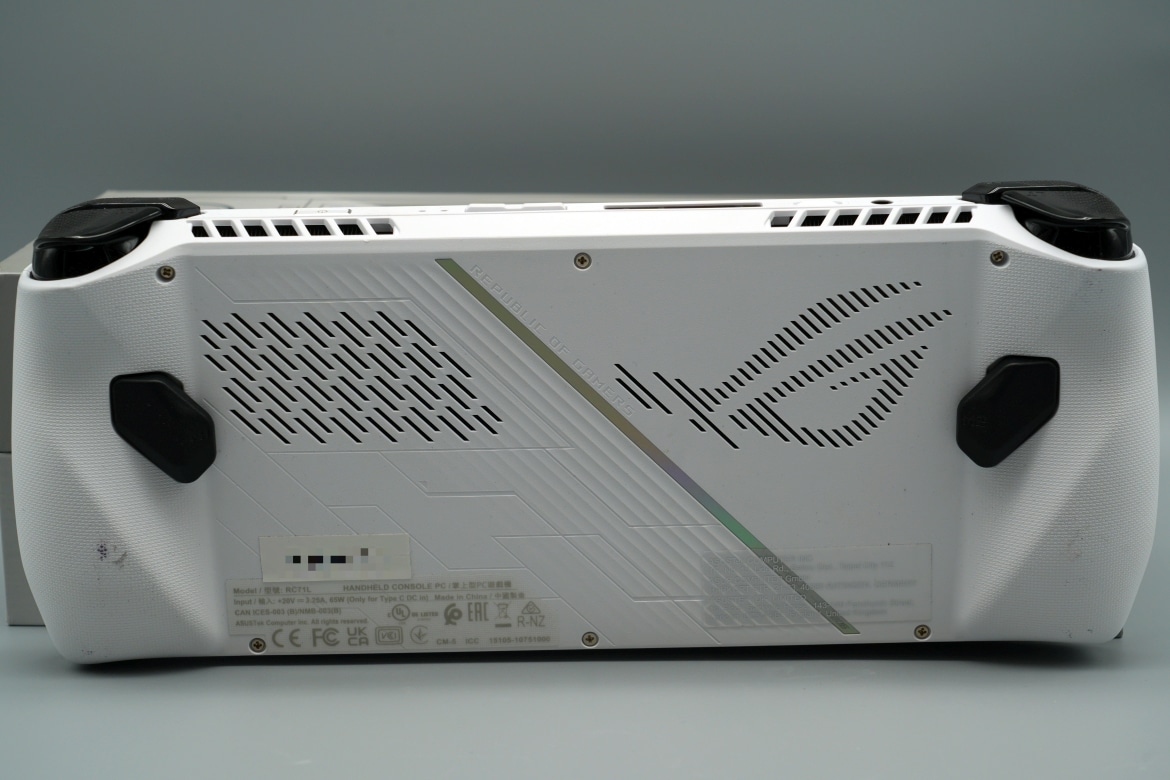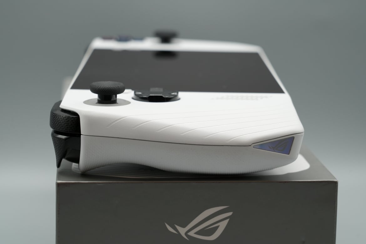 Oben gibt es mit den LB- und RB-Bumpern, sowie die LT- und RT-Triggern vier zusätzliche Tasten, an der griffigen Rückseite finden bei ASUS zwei zusätzliche Buttons Platz, zwei weniger also als im Falle des Steam Deck.