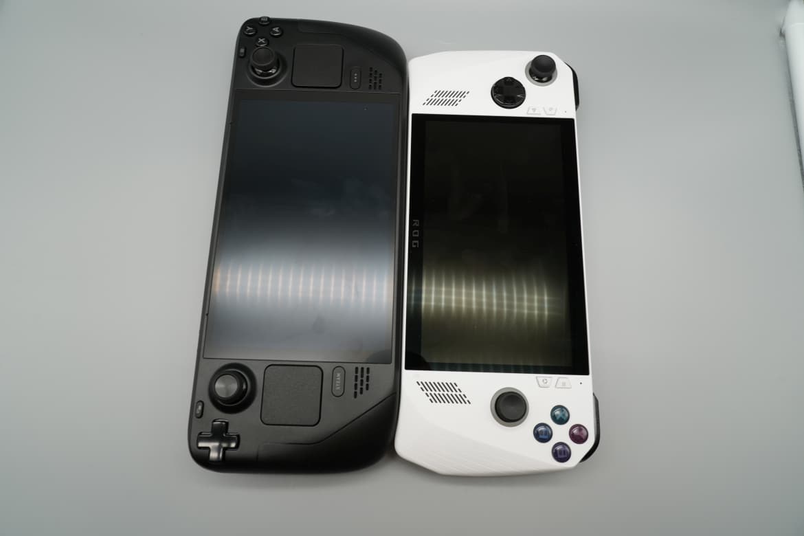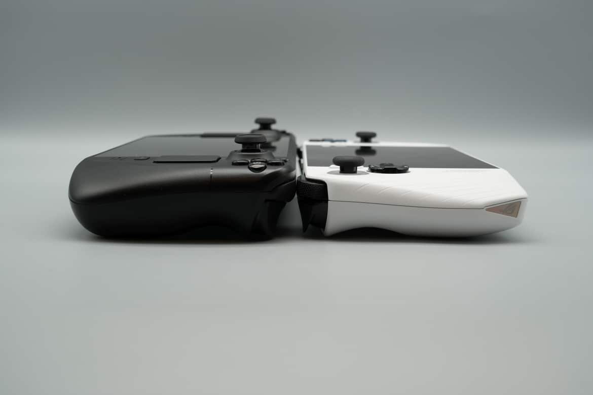 ASUS ROG Ally (Weiß) und Steam Deck OLED (Schwarz) im Größenvergleich: