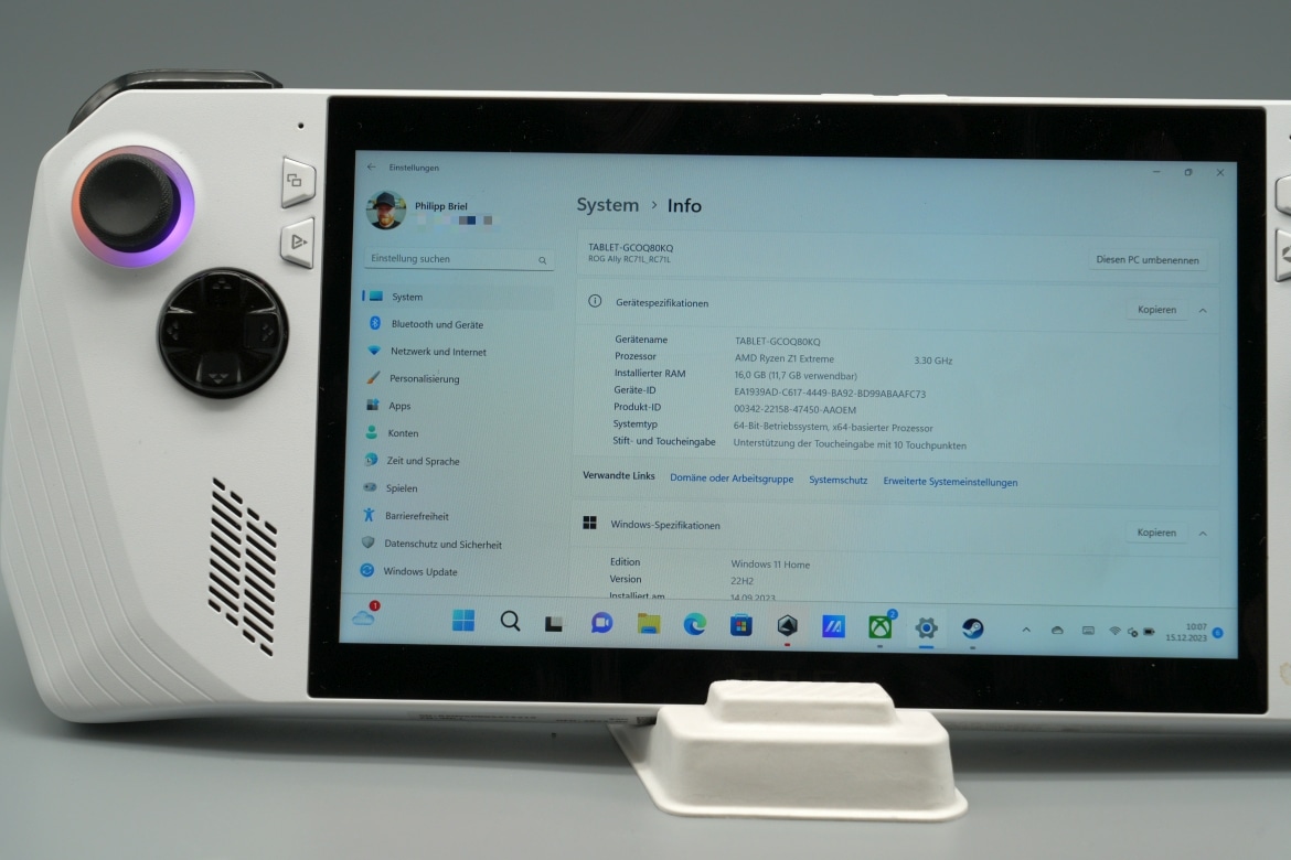 Eine weitere Besonderheit des ASUS ROG Ally im Vergleich zum Steam Deck ist das Betriebssystem. Denn hier kommt ein ganz normales Windows 11 Home-OS zum Einsatz. Die Einrichtung und grundlegende Bedienung gleicht damit jedem Windows-Notebook oder -PC.
