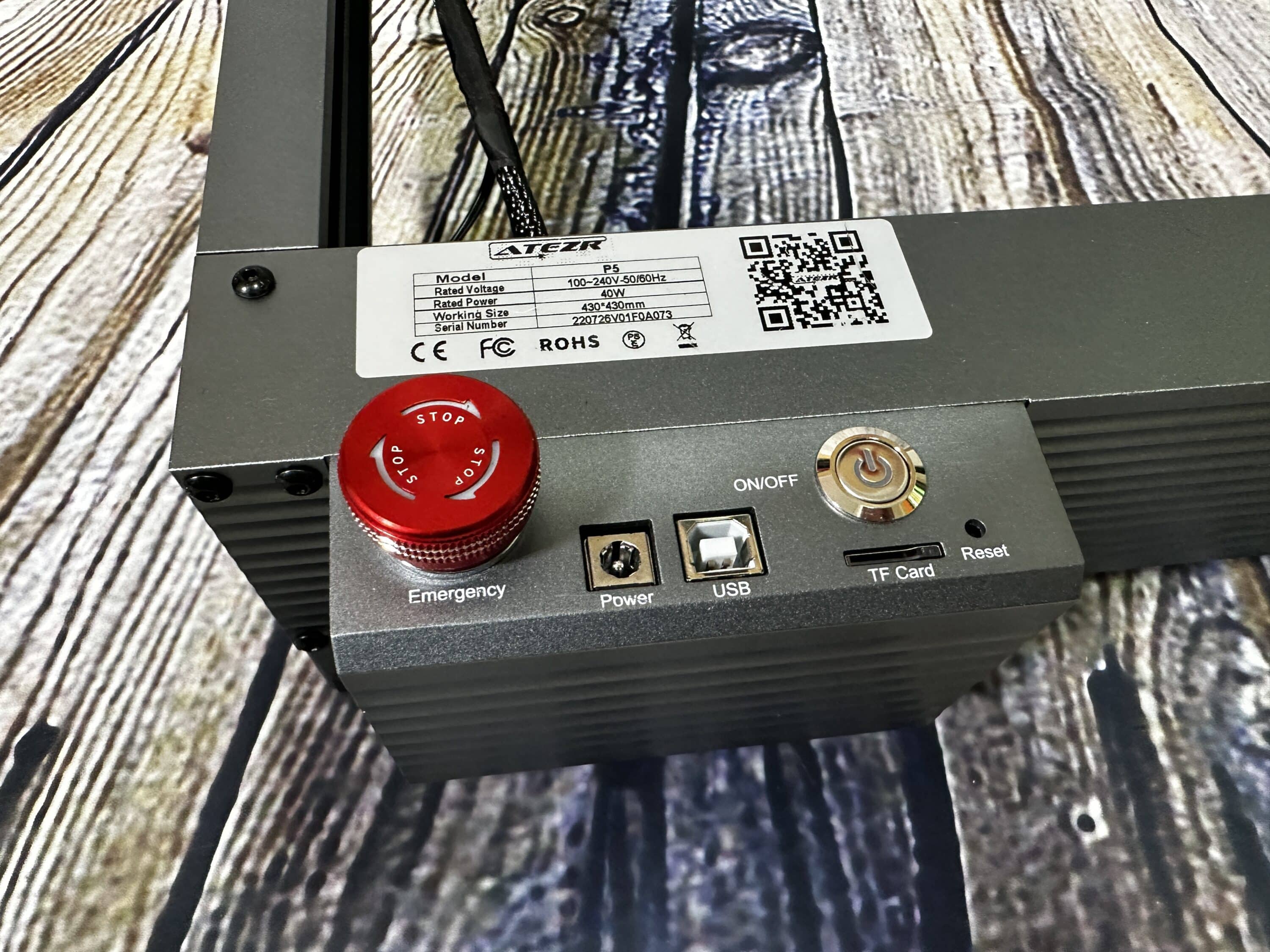 Für die Bedienung des P5 gibt es verschiedene Möglichkeiten. Der Einfachhalt halber stellen wir in diesem Testbericht nur die Variante per App vor. Es besteht jedoch trotzdem die Möglichkeit, die Maschine per Software (zum Beispiel LaserGRBL oder LightBurn) direkt über einen USB-B-Port zu steuern, oder durch Einlegen einer SD-Karte mit drauf befindlichem G-Code. Die „Atezr Laser“-App steht im Apple App Store sowie Google Play Store kostenlos zum Download zur Verfügung. Mit dieser lässt sich der P5 dann über einen lokalen Wifi-Hotspot verbinden. Für die Einrichtung muss man ca. 5 Minuten einplanen.