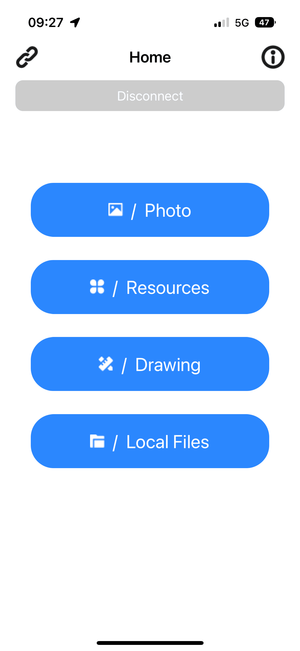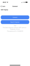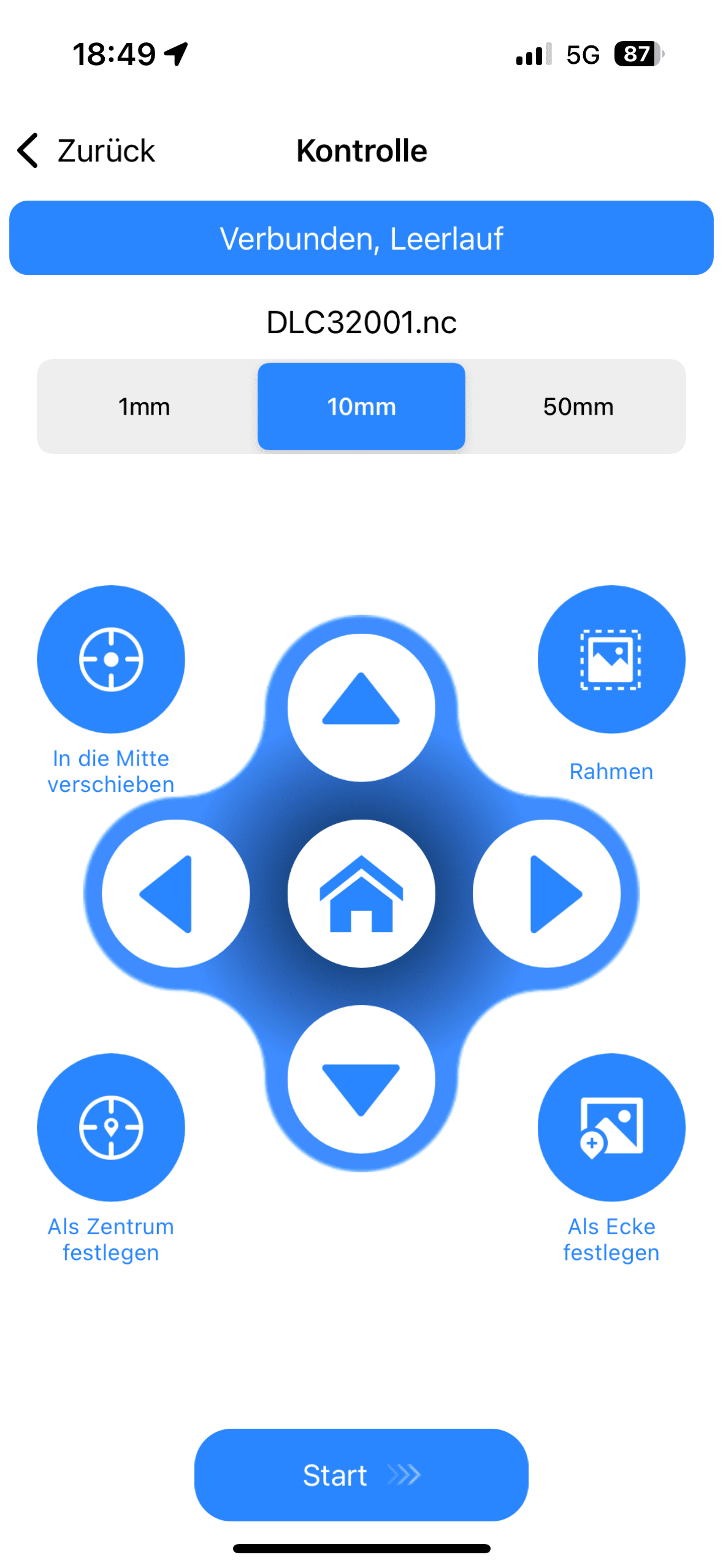 In der App selbst stehen einem insgesamt vier Funktionen zur Verfügung – Foto, Ressourcen, Zeichen und lokale Dateien. Zum Verbinden der Maschine mit der App muss man zunächst eine super einfache Konfiguration vornehmen. Dazu navigiert man auf das Verbindungs-Symbol auf der oberen linken Seite und drückt verbinden. Dadurch landet man in den WLAN-Einstellungen seines Handys, um sich dort mit dem WLAN des P5 zu verbinden. Wieder zurück in der App ist man schon fertig und die erste Gravur kann losgehen.