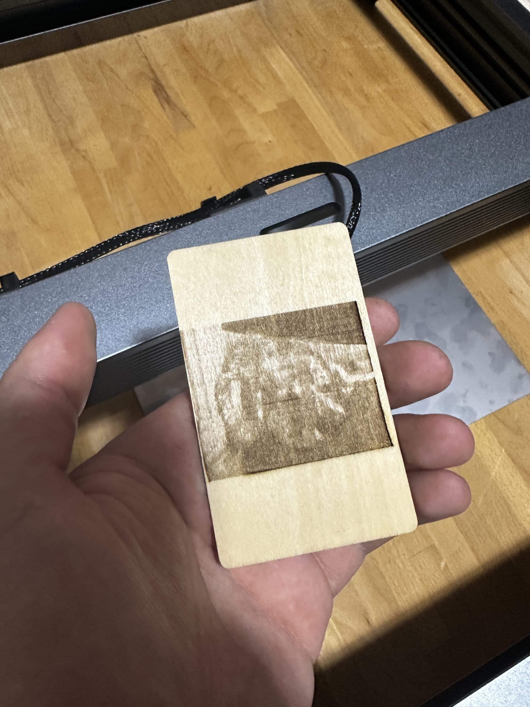 Im dann zweiten Versuch haben wir uns an die im Handbuch empfohlenen Einstellungen gehalten und nun ein Bild als Motiv verwendet. Nach dem weiteren Durchlauf sahen die Ergebnisse direkt besser aus. An der Stelle hätten wir uns aber eine Funktion in der App gewünscht, welche die Auswahl des zu gravierenden Materials ermöglicht und man so direkt die empfohlenen Einstellungen nutzen kann.