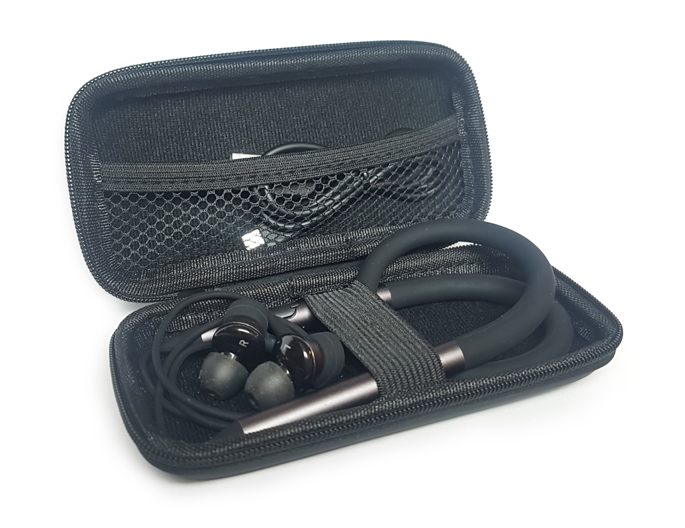 Das mitgelieferte Trage-Etui erschien zunächst nicht ausreichend dimensioniert, um den Kopfhörer darin verstauen zu können. Mit etwas geduldigem und vorsichtigem Biegen und Drücken des Nackenbands, klappt es letztendlich aber doch und ist allemal besser, als die teils doch etwas filigranen Kabel des Kopfhörers schutzlos in eine Tasche zu stopfen. Nebenbei passt dann auch praktischerweise noch das Ladekabel mit ins Etui.