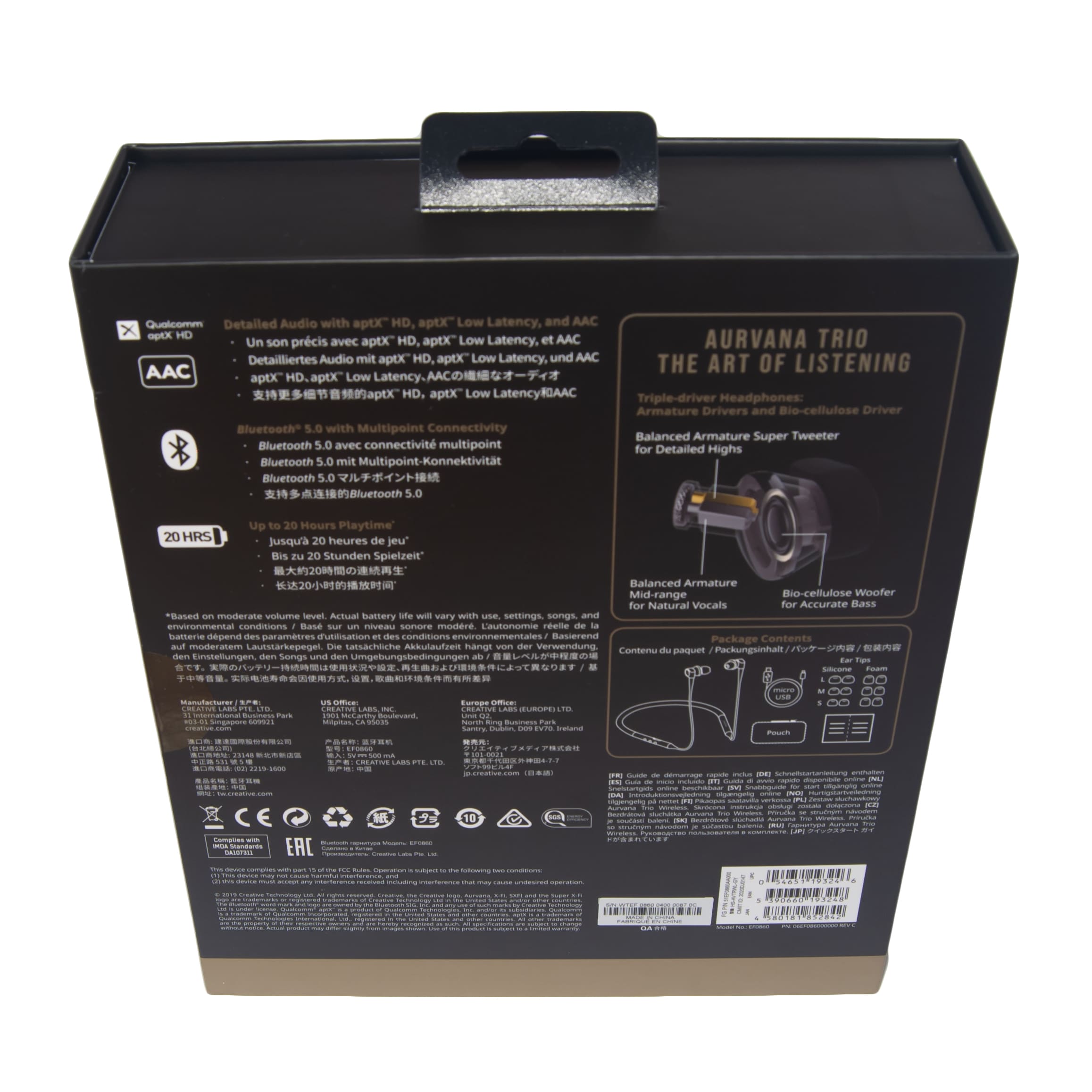 Dank eines Hybrid-Dreifachtreibersystems seien beim Aurvana eine makellose Audiowiedergabe, sowie klare Mitten und Höhen und präzise und kraftvolle Bässe gewährleistet. Tatsächlich klingt der Aurvana auch ohne SXFI bereits sehr gut und erscheint in einem simplen und nicht ganz fairen Vergleichstest beinahe gleichauf mit dem SXFI Gamer Headset von Creative, welches seinerseits jedoch auch bei abgeschaltetem Super X-Fi noch um einiges voller rüberkommt.