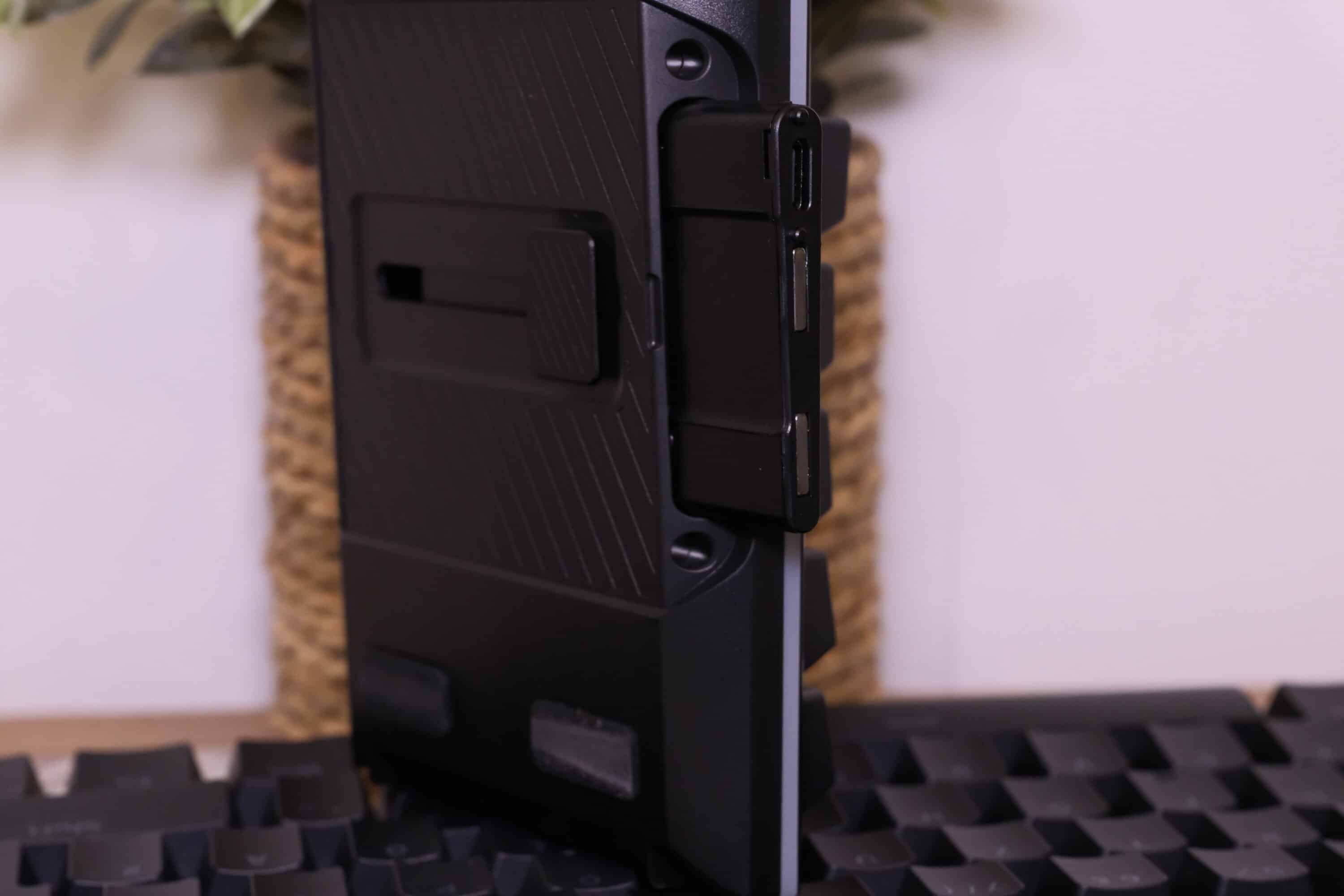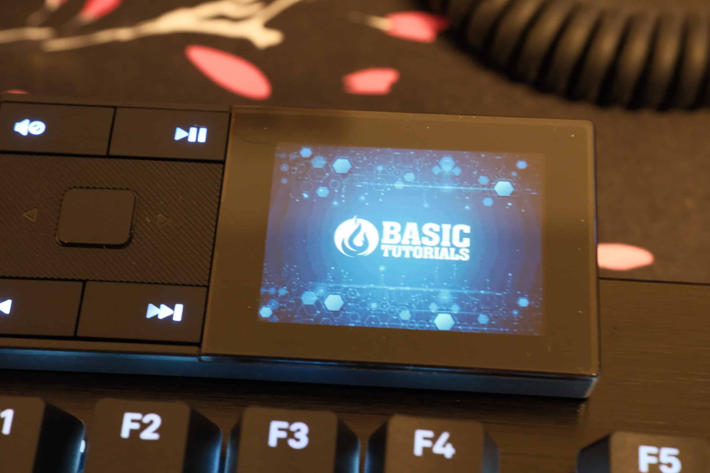 Da wäre beispielsweise ein Media Dock, das an der Oberseite der Tastatur via USB-C an zwei verschiedenen Stellen platziert werden kann – wahlweise links oder rechts, was euch lieber ist. Es verfügt nicht nur über einen Drehregler, um die Lautstärke anzupassen, sowie vier dedizierte Medientasten, sondern auch drei Bedienelemente und ein kleines Display, über das verschiedene Einstellungen vorgenommen werden können. Leider handelt es sich dabei nicht um einen Touchscreen.