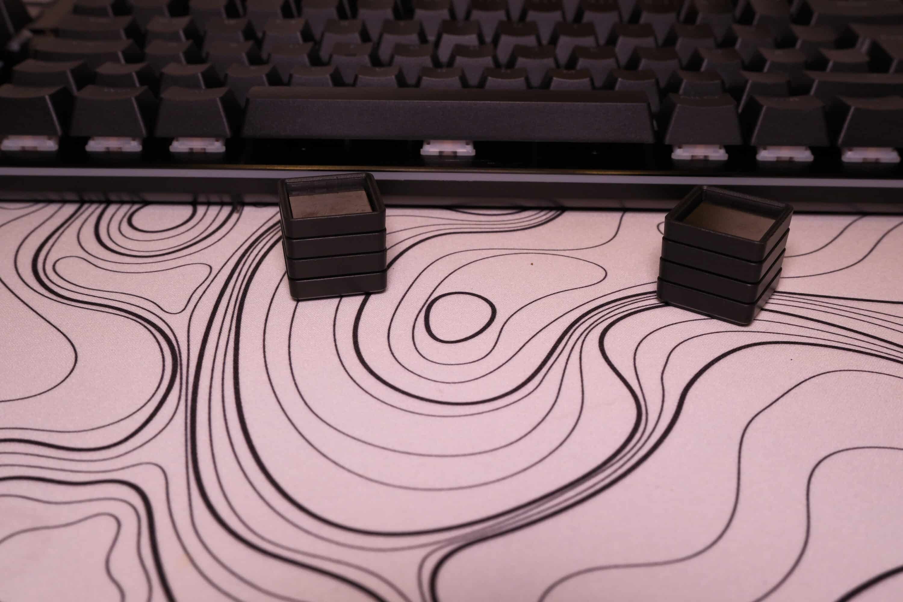 An der Unterseite lässt sich die Tastatur mithilfe von magnetischer Standfüße in der Höhe justieren. Ein bis vier Standfüße lassen sich dabei kombinieren, um den Winkel anzupassen. Das Ganze wird zusätzlich magnetisch gehalten.