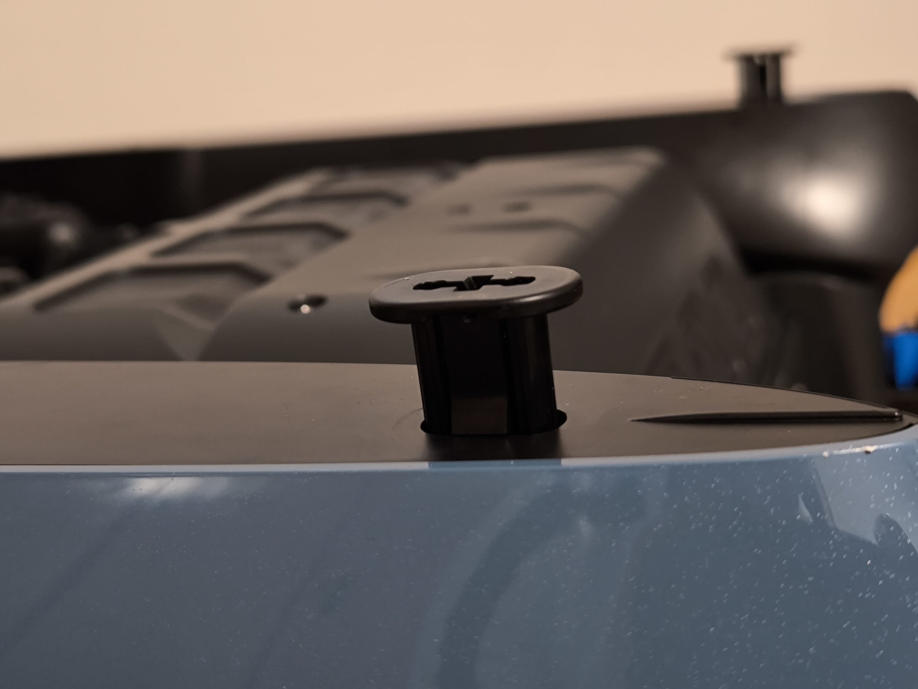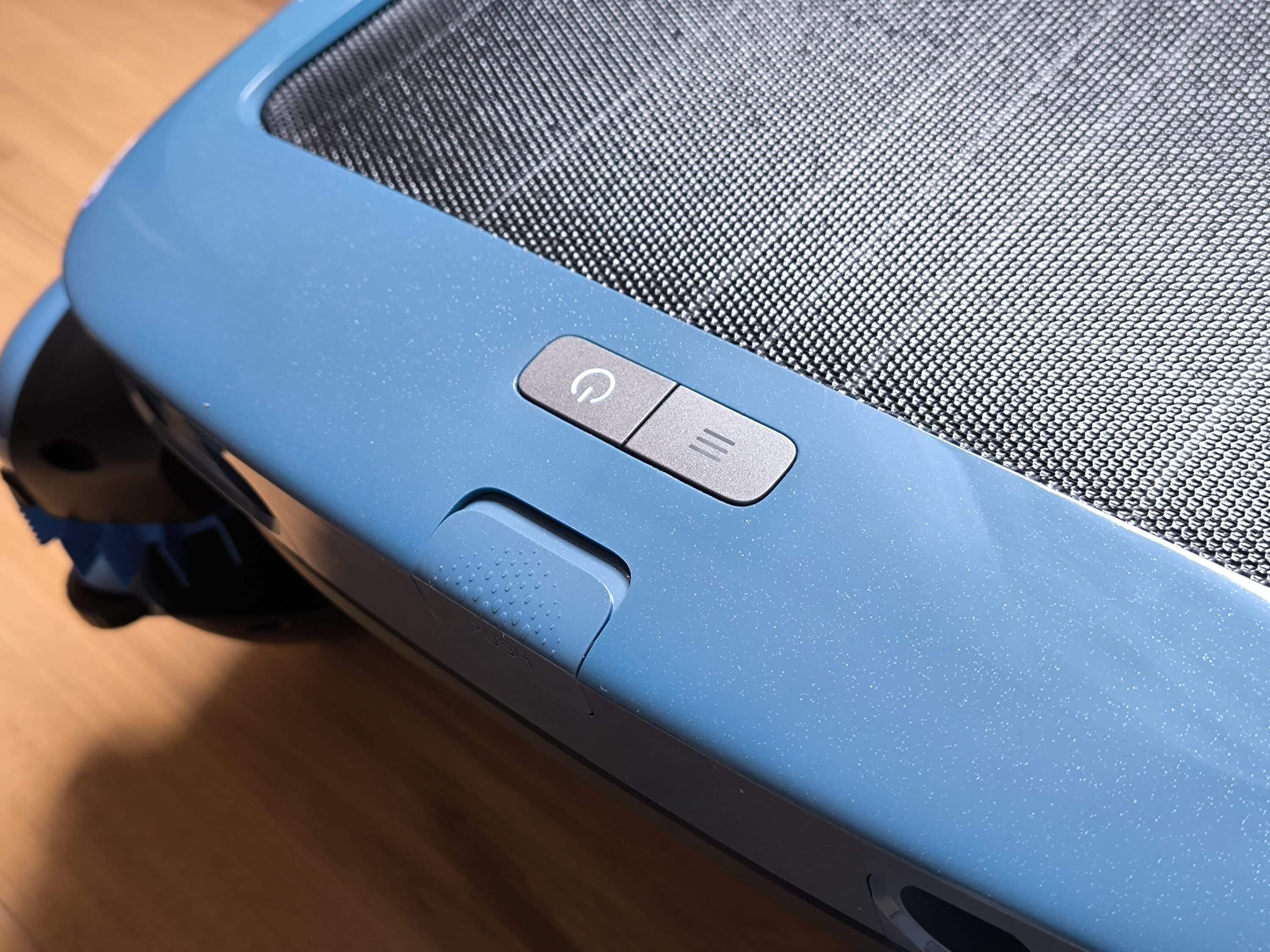 Als nächstes wird die Kläreinheit installiert. Hier wird einmalig der Deckel samt Alufolie entfernt und in die entsprechende Vorrichtung auf der Geräterückseite eingeschoben. Zum Anschalten des Beatbot iSkim Ultra reicht ein kurzer Tastendruck des Power-Knopfes an der Kopfseite.