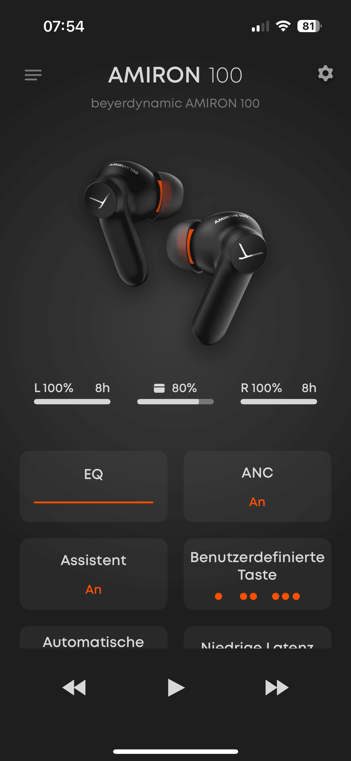 Gute Akkulaufzeit der beyerdynamic Amiron 100