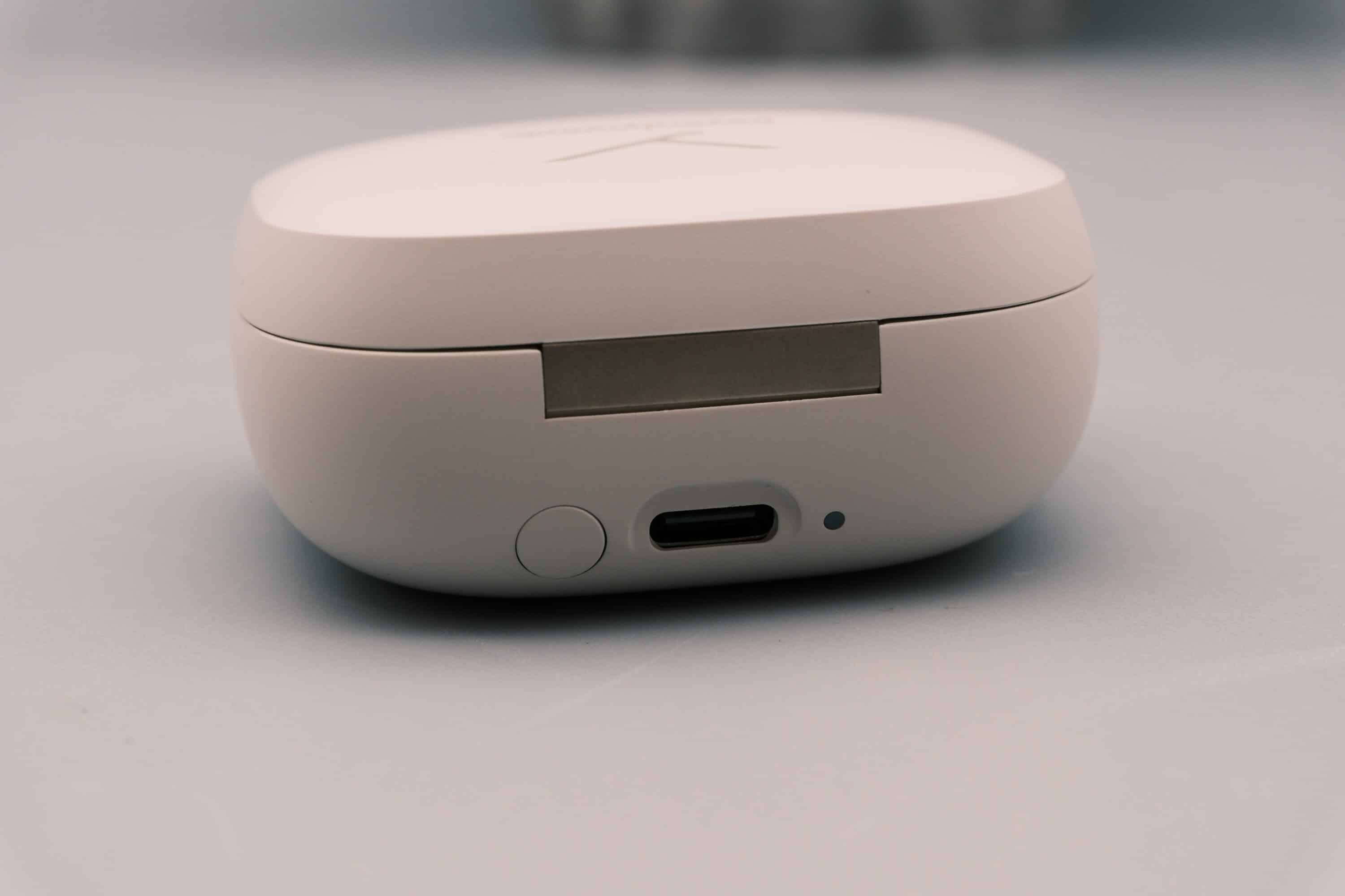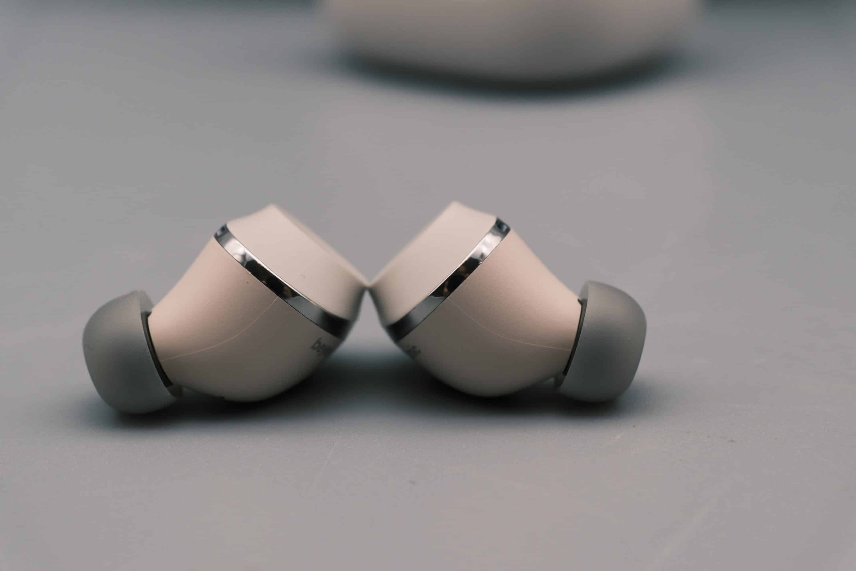 Vielmehr geht der Hersteller Heilbronn hier den Weg einiger bekannter Premium-Hersteller und entschied sich für ein abgerundetes, recht schmales Design, das hinsichtlich der Form ein wenig an die Sony WF-1000XM5 oder Sennheiser Momentum True Wireless 4 erinnert.