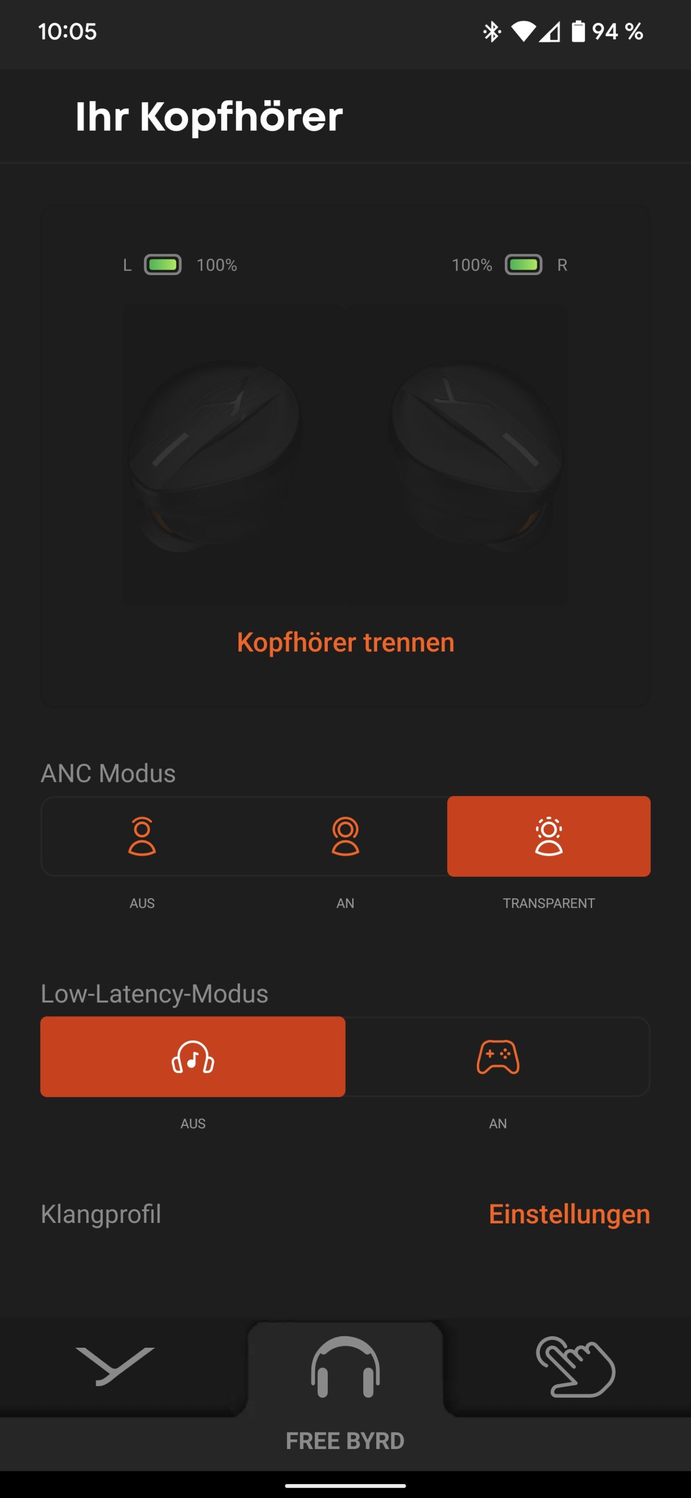 ANC und Transparenzmodus