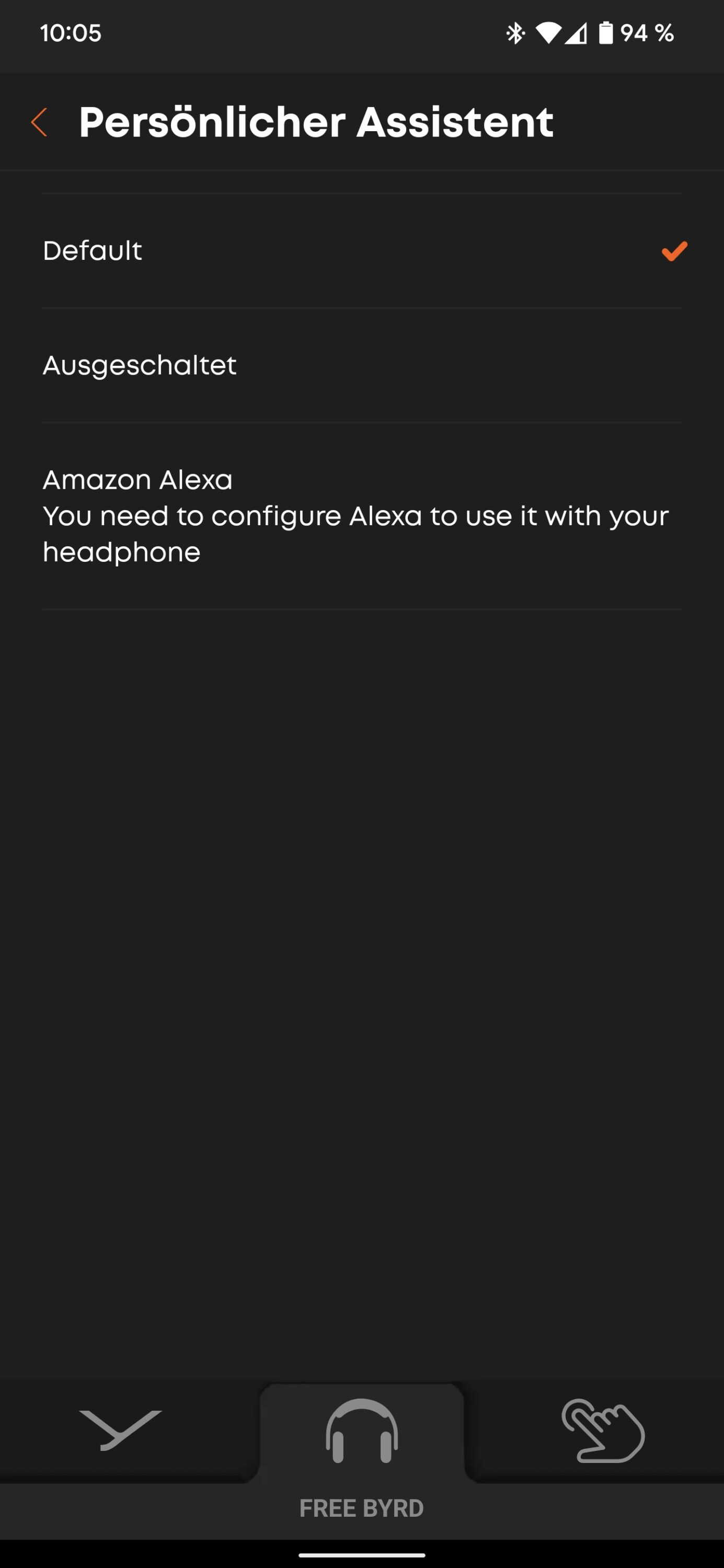 Neben dem bereits angesprochenen Klangtest besteht hier die einzige Möglichkeit, ANC oder Transparenzmodus komplett auszuschalten. Zudem informiert die Startseite über den Akkustand, während du auf Wunsch den jeweiligen Sprachassistenten des Betriebssystems, als Apples Siri oder Google Assistant durch Amazons Alexa austauschen kannst.