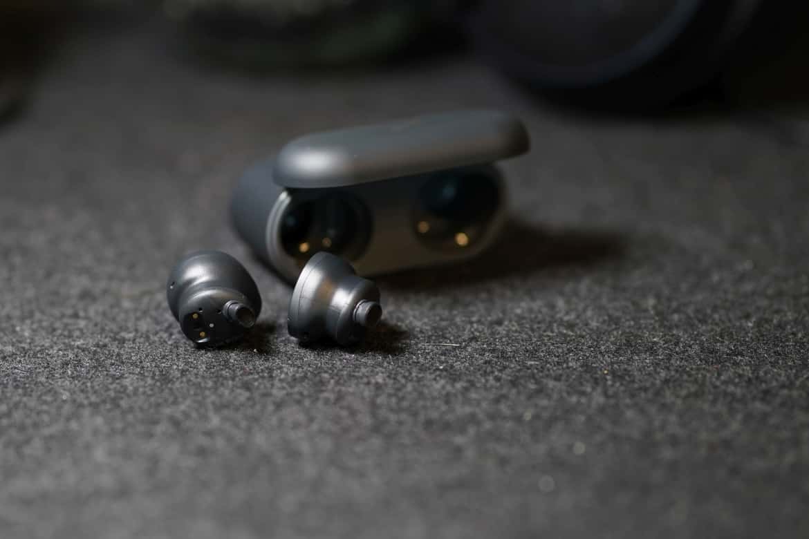 Genauso robust fühlen sich auch die Earbuds selbst an, wozu auch deren vergleichsweise eher höher gelagertes Gewicht von knapp 7 Gramm pro In-Ear-Kopfhörer beiträgt. Löblich: Dank IPX4-Zertifizierung sind die Kopfhörer auch gegen Schweiß und Spritzwasser geschützt.